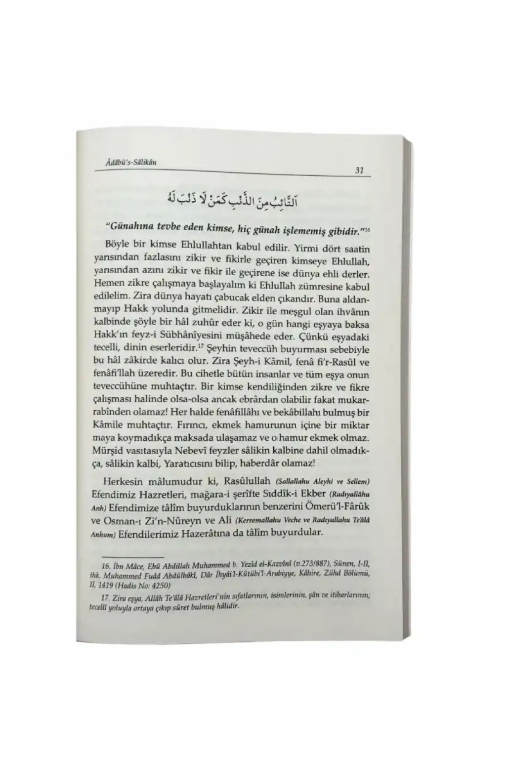“Edep üzere ol ki Cenâb-ı Hakk seni edeplemesin! Zira (Cenâb-ı Hakk), yalancı, variyetli ve iddialıyı sevmez. Sadık ve mahviyetli ve edepliyi sever, muhabbet eder ve pek çok nimetlerini ve Kemâlât-ı Sübhânîyesini öyle olan kimseye ihsân buyurur. Tecelli-i Zâtiyyesi, hâs ve sâdık mahbûbları içindir. Sakın ola ki malına, sıhhatine, haline ve kemâline mağrur olma ki mağrûriyyet seni bir gün berbat etmesin!”