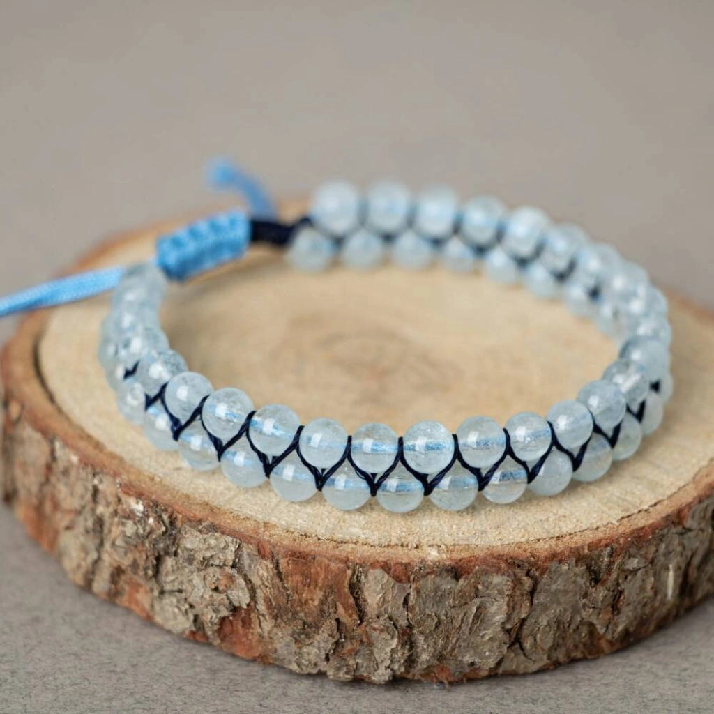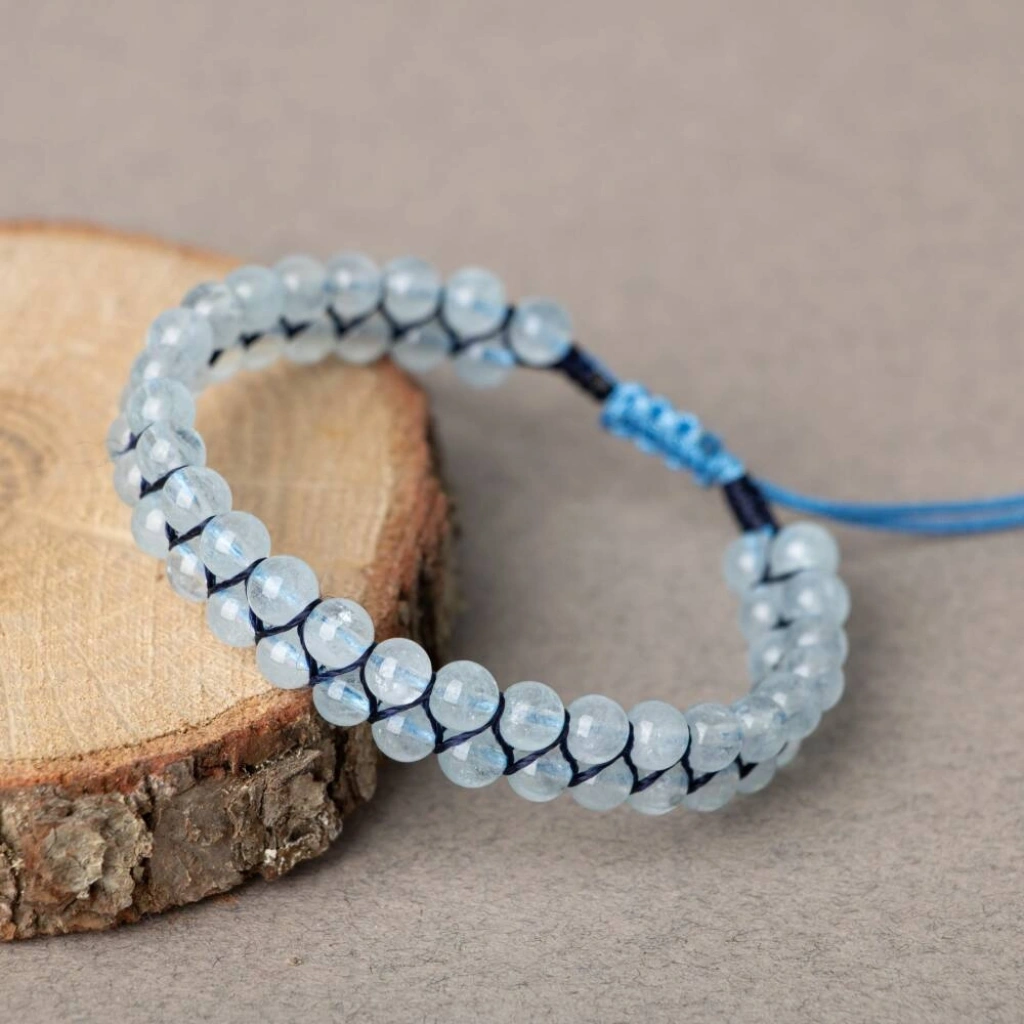 Akuamarin 4mm Çift Sıra Doğal Taş Bileklik