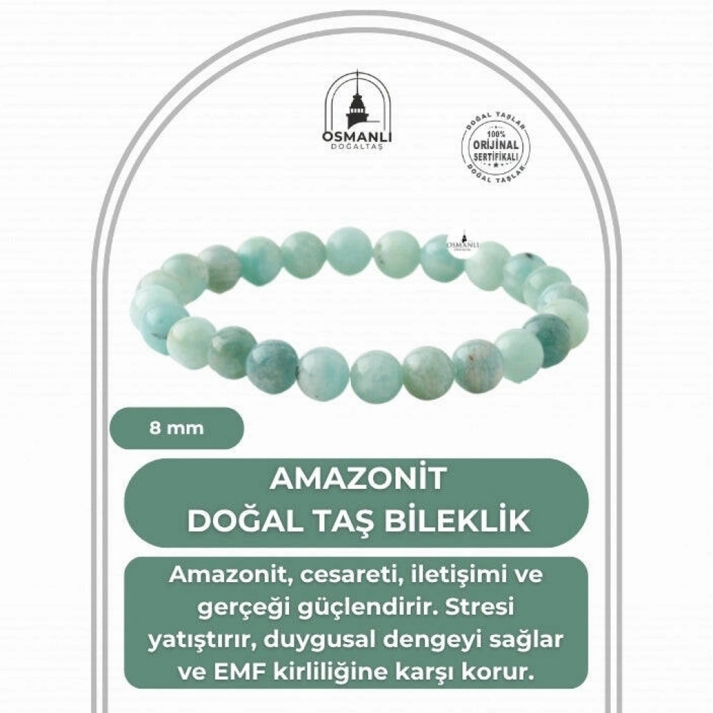 TÜM TAŞLARIMIZ SERTİFİKALI ve %100 ORJİNAL GERÇEK DOĞAL TAŞTIR. Doğal taş takılarının bu eşsiz güzelliği ve faydalarıyla müşterilerimize en kaliteli ve en özel takıları sunuyoruz. Her bir takı, tasarımcılarımız tarafından özenle hazırlanmış, doğal taşların renkleri ve enerjileri ile birlikte, size en uygun olanı seçmenizi sağlar.Doğal taş takılarımız, herhangi bir moda stiline mükemmel bir şekilde uyum sağlar. Aynı zamanda doğanın eşsiz güzelliklerini keşfetmek isteyenler için de harika bir seçenek sunarlar. Kendinizi özel hissetmek istediğinizde, doğal taş takılarımız sizin için mükemmel bir seçenek olacaktır.Ürün İçeriğindeki Taşlar Aşağıda Listelenmiştir. Amazonit Taşı Özellikleri: Kreatif düşünceyi besler. Yetenekleri kuvvetlendirir. Kızgınlık ve öfke gibi keskin negatif duyguları törpüler. Başkalarıyla uyumu artırır.