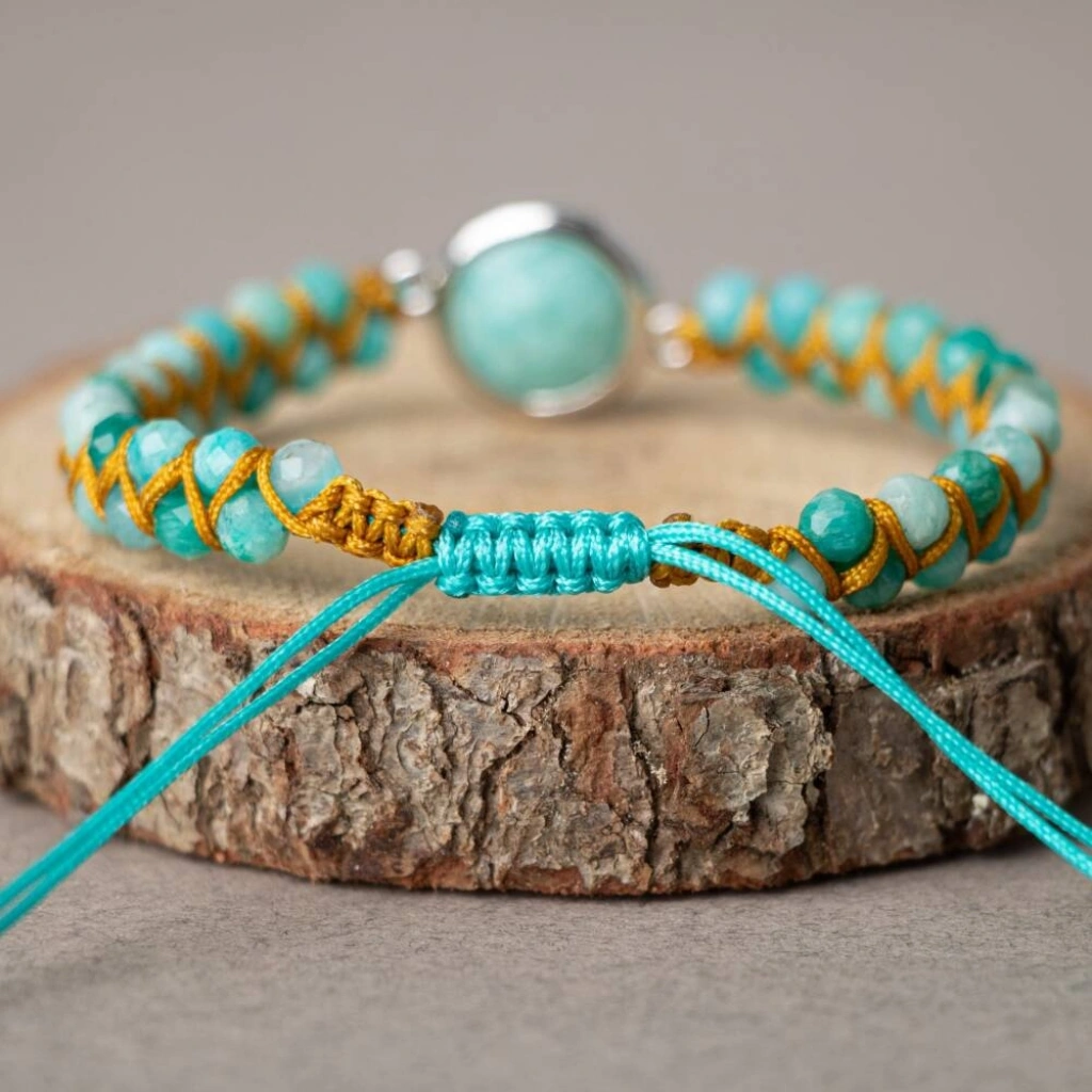 Amazonit Doğal Taş Makrome Bileklik