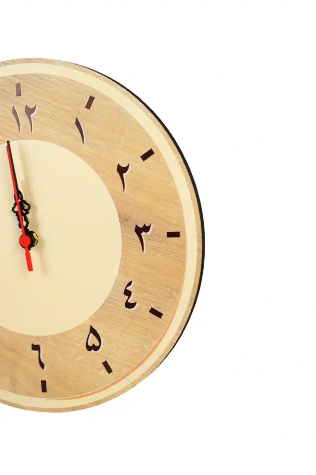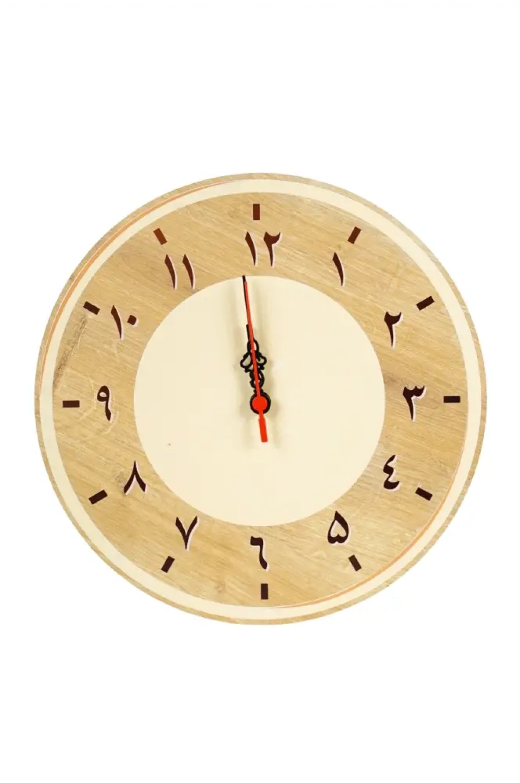 Dayanıklı ve hafif MDF malzeme üzerine üretilmiştir. Yüksek çözünürlüklü ve uzun ömürlü UV Dijital Baskı tekniği kullanılarak doğal ahşap deseni uygulanmıştır. Renkler solmaya karşı dirençlidir. Akar (Sessiz) Mekanizma kullanılmıştır. Tık-tık sesi yapmaz, sessiz ve kesintisiz zaman akışı sağlar. Arapça rakamlarla modern ve minimalist ahşap efekti birleştirilmiştir.