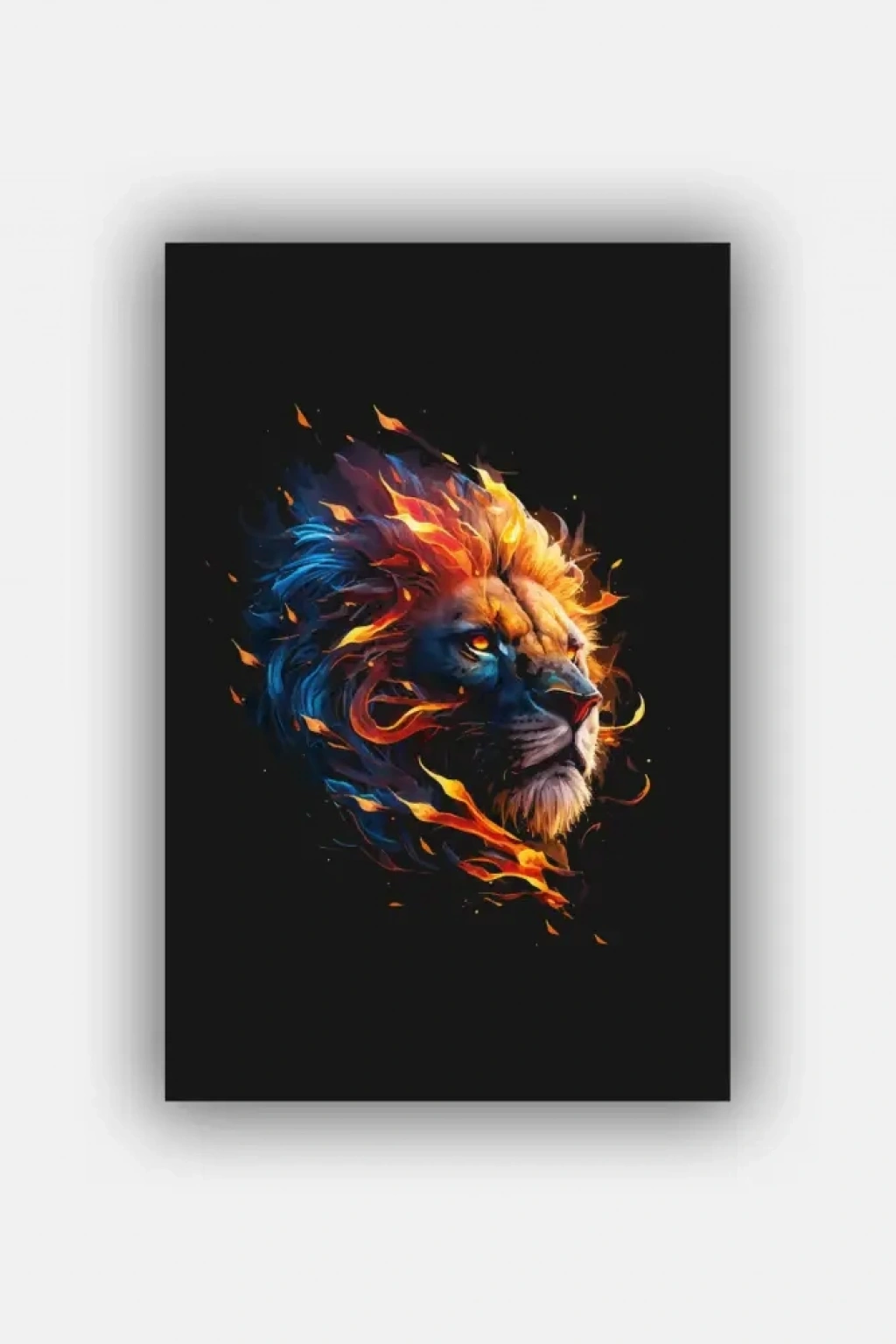 “Alevli Aslan Tasarımlı MDF Tablo”, ateşin enerjisi ile aslanın ihtişamını bir araya getiriyor. Siyah zemin üzerinde parlayan turuncu ve mavi alev detayları, güçlü bir görsel etki sunarken yaşam alanlarınıza karizmatik bir hava katıyor.
