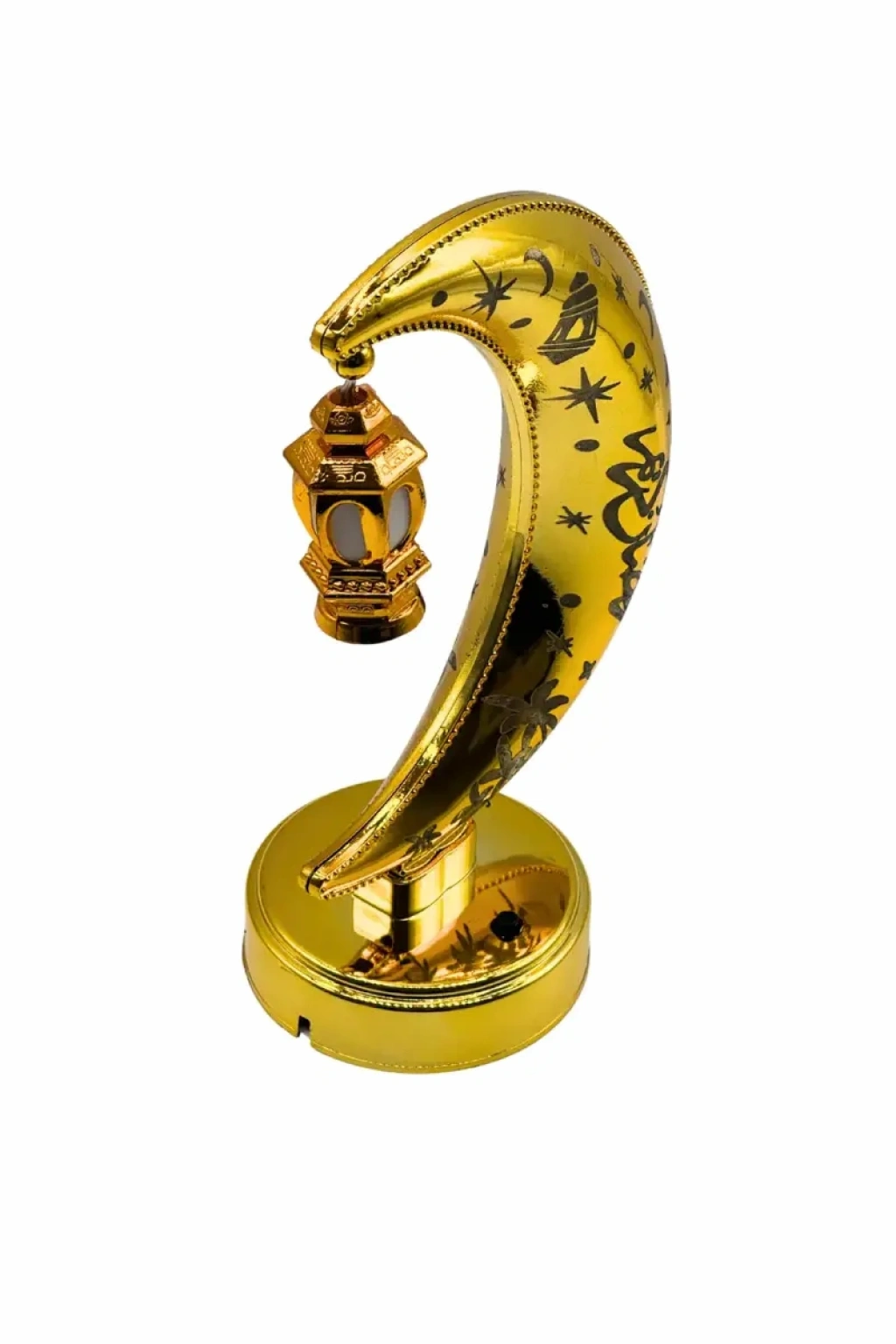 Ay Yıldız Motifli Altın Rengi Işıklı Masaüstü Lamba