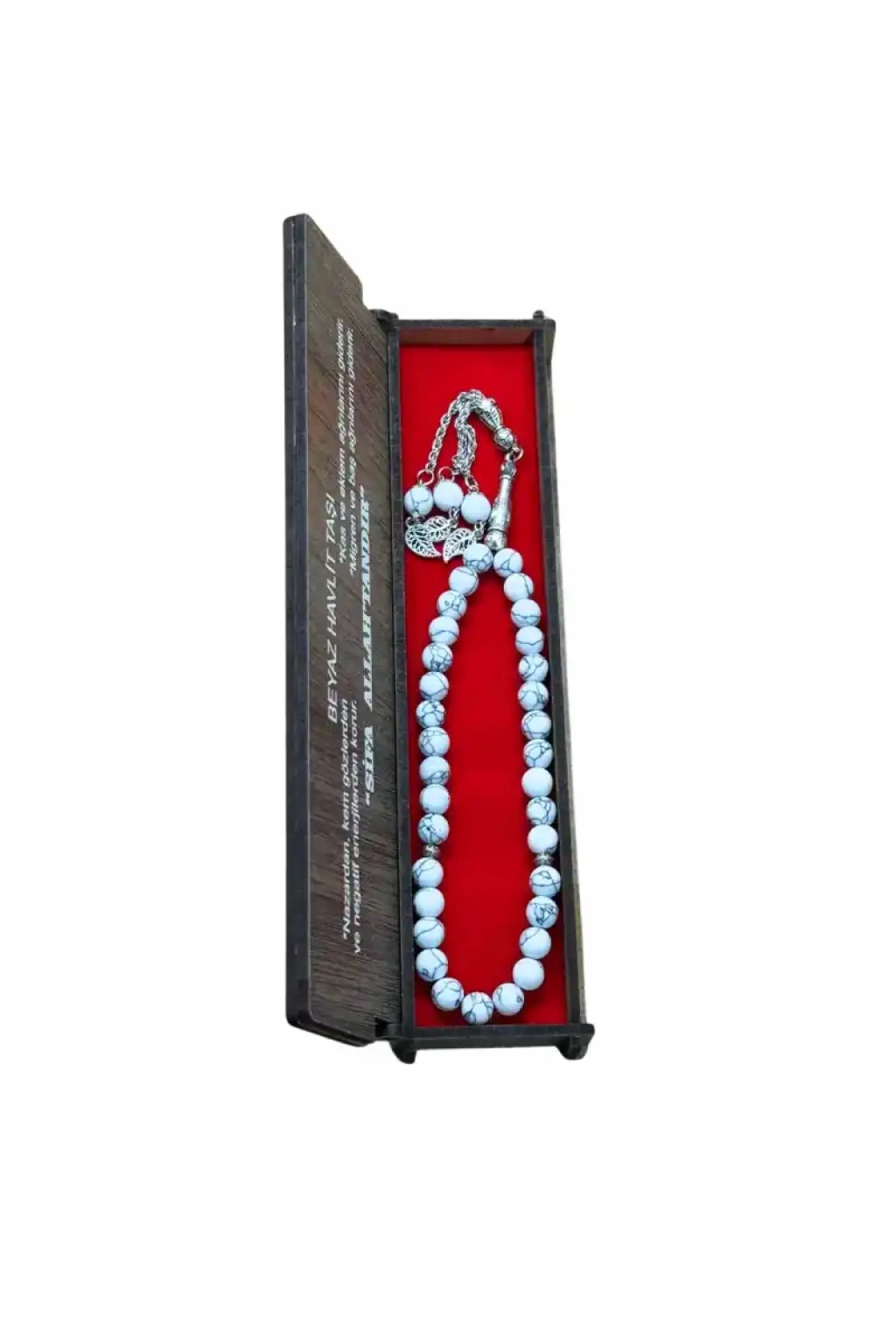 Beyaz Havlit Taşı 33 Lük Kutulu Tesbih