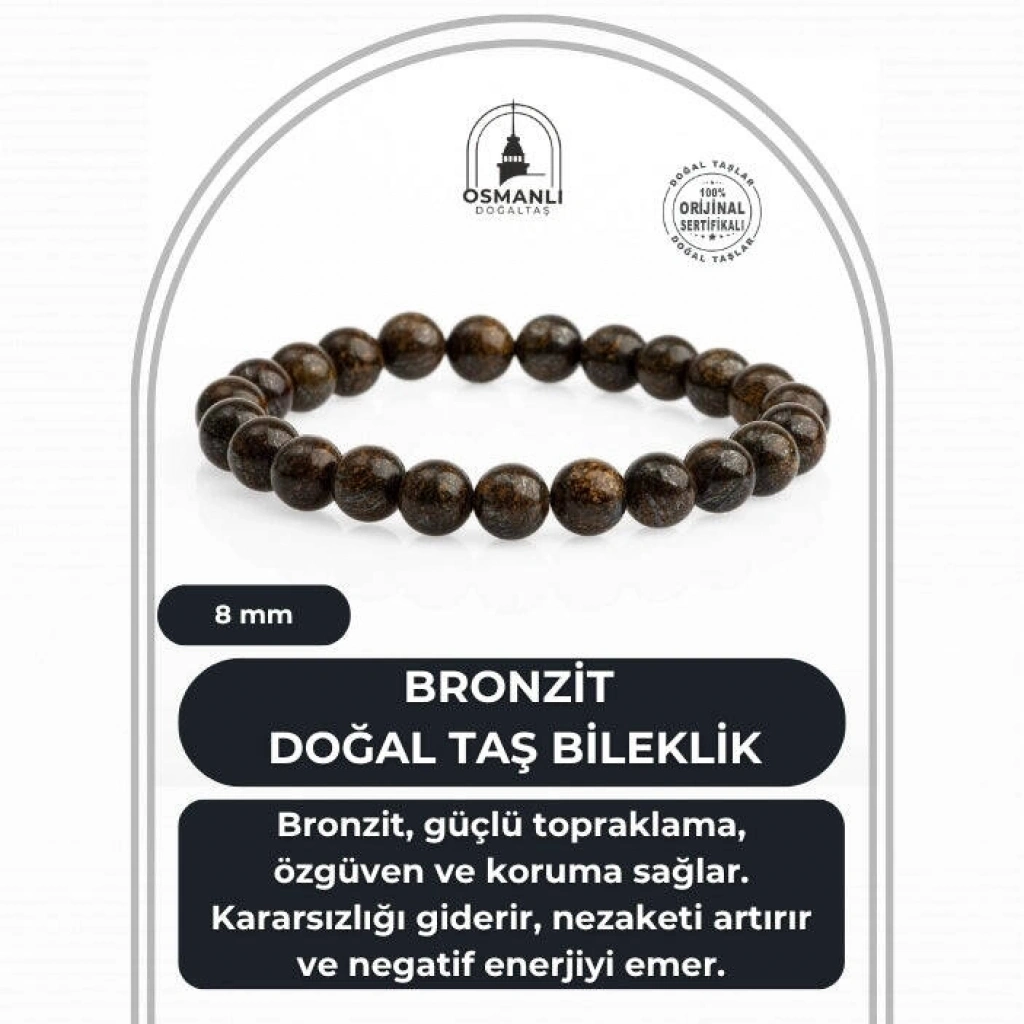 TÜM TAŞLARIMIZ SERTİFİKALI ve %100 ORJİNAL GERÇEK DOĞAL TAŞTIR. Doğal taş takılarının bu eşsiz güzelliği ve faydalarıyla müşterilerimize en kaliteli ve en özel takıları sunuyoruz. Her bir takı, tasarımcılarımız tarafından özenle hazırlanmış, doğal taşların renkleri ve enerjileri ile birlikte, size en uygun olanı seçmenizi sağlar. Doğal taş takılarımız, herhangi bir moda stiline mükemmel bir şekilde uyum sağlar. Aynı zamanda doğanın eşsiz güzelliklerini keşfetmek isteyenler için de harika bir seçenek sunarlar. Kendinizi özel hissetmek istediğinizde, doğal taş takılarımız sizin için mükemmel bir seçenek olacaktır. Ürün İçeriğindeki Taşlar Aşağıda Listelenmiştir. Bronzit Taşı Özellikleri: Temel çakra taşıdır. Öfkeyi kontrol edebilmeyi sağlar. Hayattaki yenilik ve gelişmelere adapte olunmasını sağlar. Negatif duyguları ve hissiyatı uzaklaştırır.