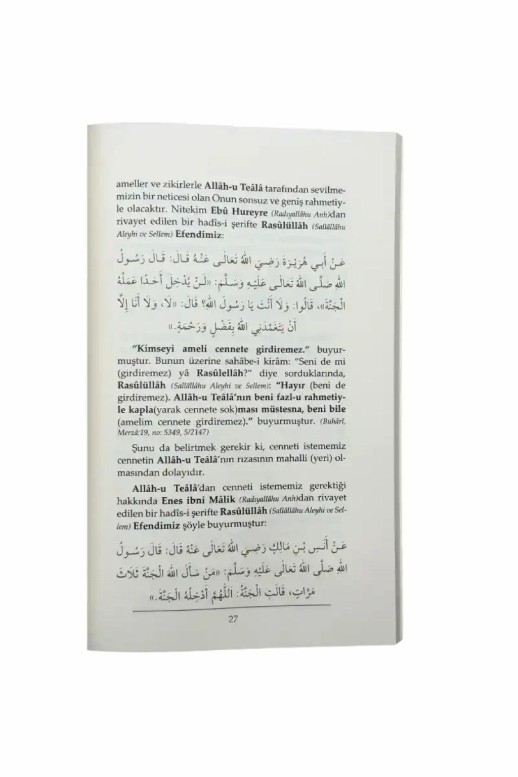 İşte elinizdeki bu mütevâzi çalışma hadîs-i şerifte zikredildiği üzere:''Her kim Allâh-u Teâla'dan üç kere cennet isterse, cennet: 'Allâhım! Onu cennete girdir.' der. Her kim de üç kere cehennemden (Allâh-u Teâla'ya) sığınırsa, cehennem:'Allâhım! Onu ateşten koru.' d(iye dua ed)er.'' (Tirmizî, Sıfatü'l-cennet:27, no:2572, 4/699) kaidesini kendimize düstur edinmek için ''Kim (inanarak) şöyle şöyle derse, cennet ona vacib olur (o kişi cennete girer) gibi lafızlarla Rasûlüllah (Sallâllâhu Aleyhi ve Sellem) Efendimiz'in cenneti kazanmamız ve cehennemden korunmamız için bizlere öğrettiği dua ve zikirleri ''Cenneti kazandiran dualar'' ve ''Cehennemden kurtaran dualar'' başlıkları altında bir araya getirmeye çalışarak hazırlanmış bir eserdir.