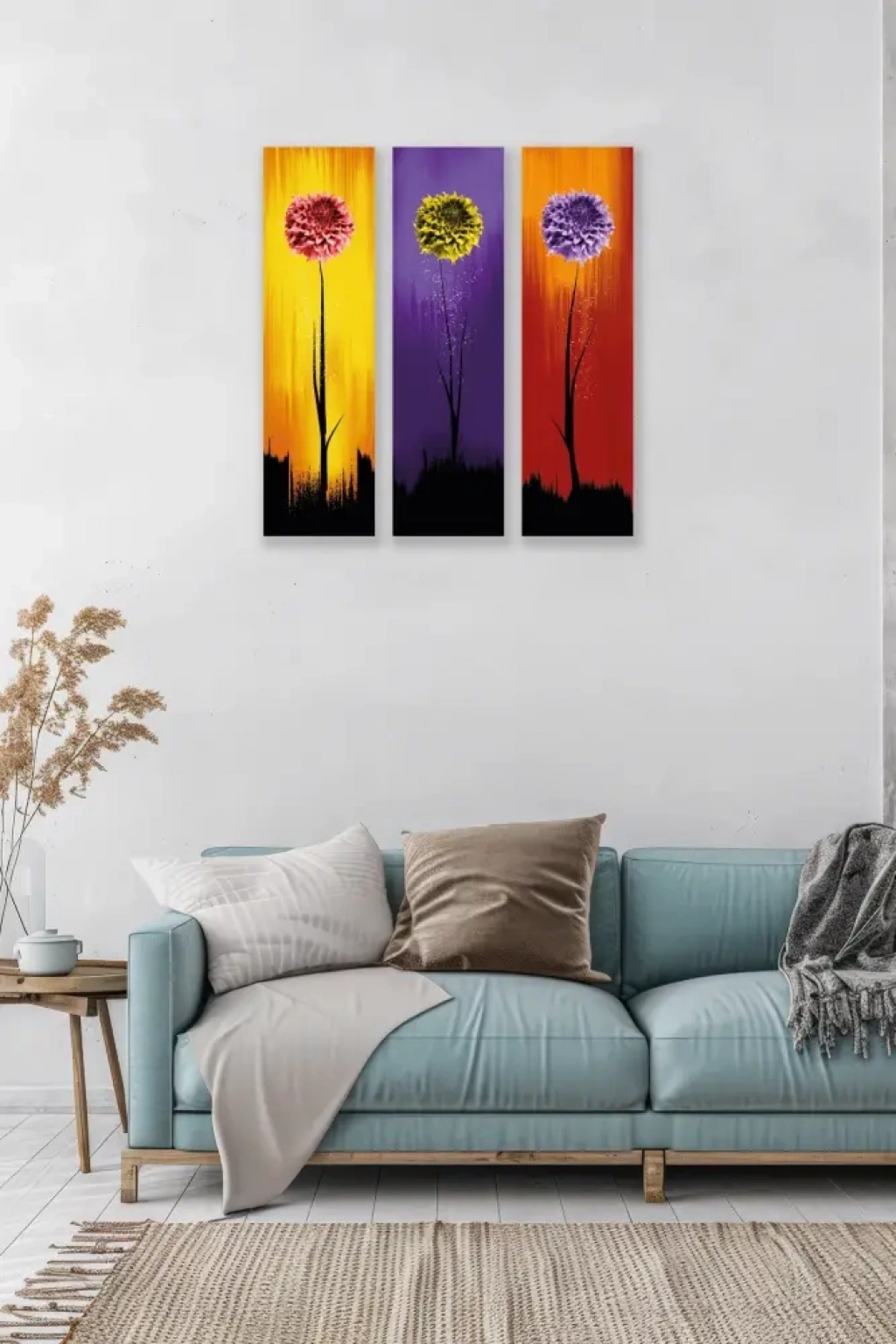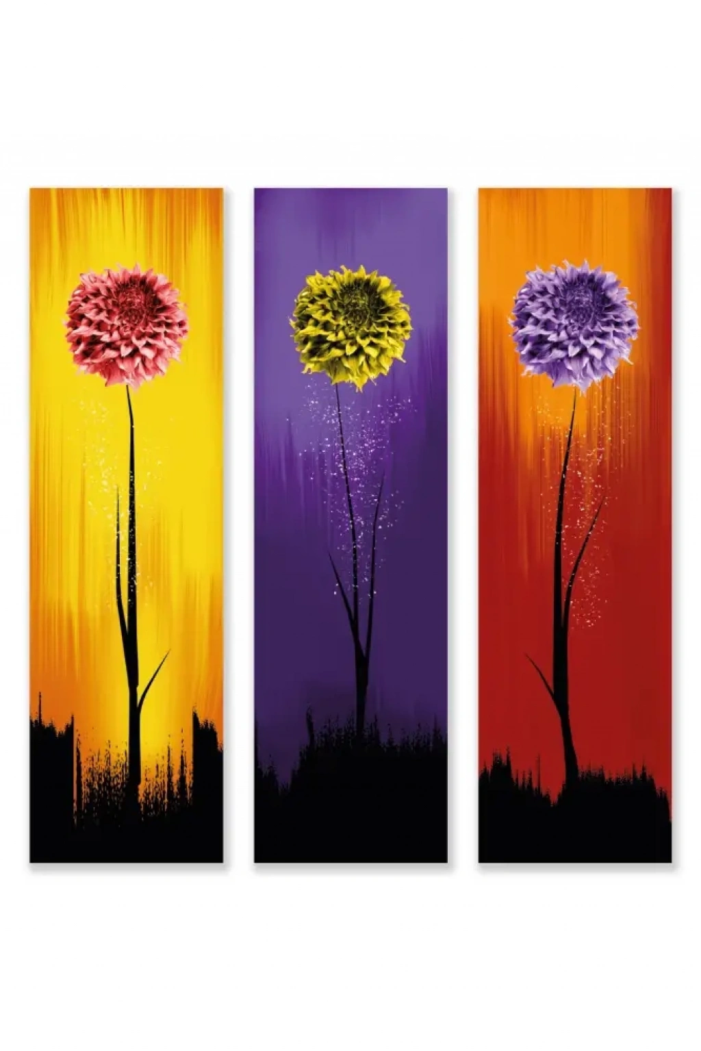 Set İçeriği: 3 adet tablo (renkli çiçek desenli tasarımlar)