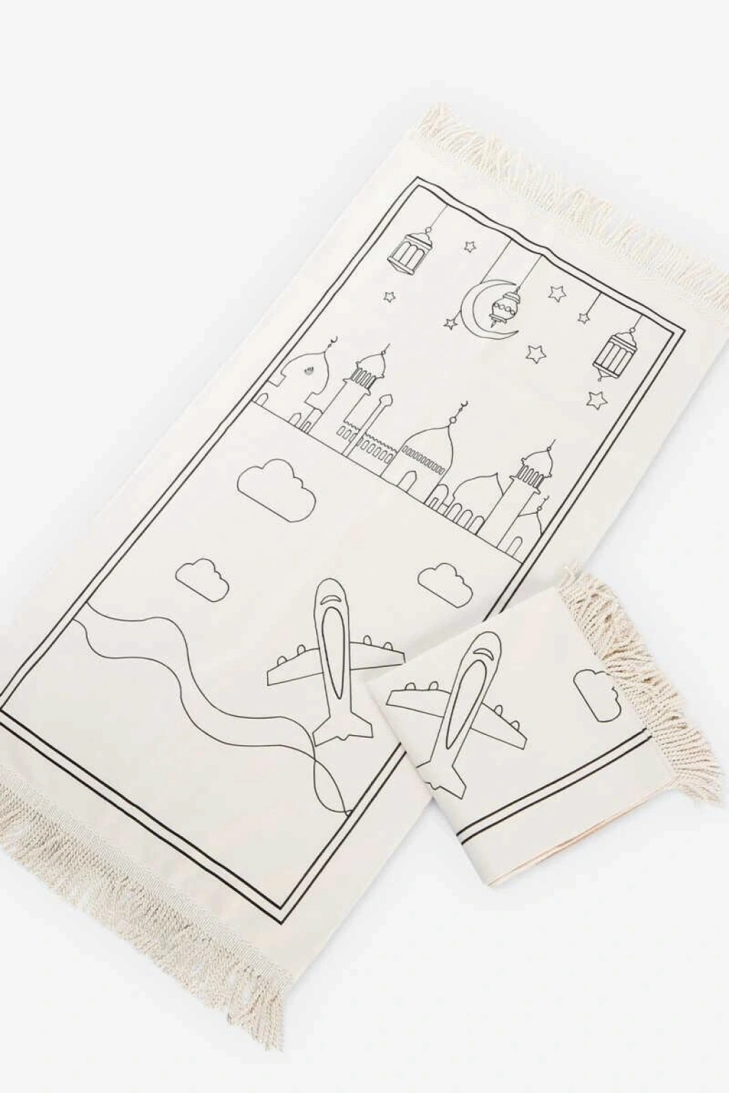 Çocuklara Özel Yıkanabilir Boyamalı Seccade Seti - Mavi