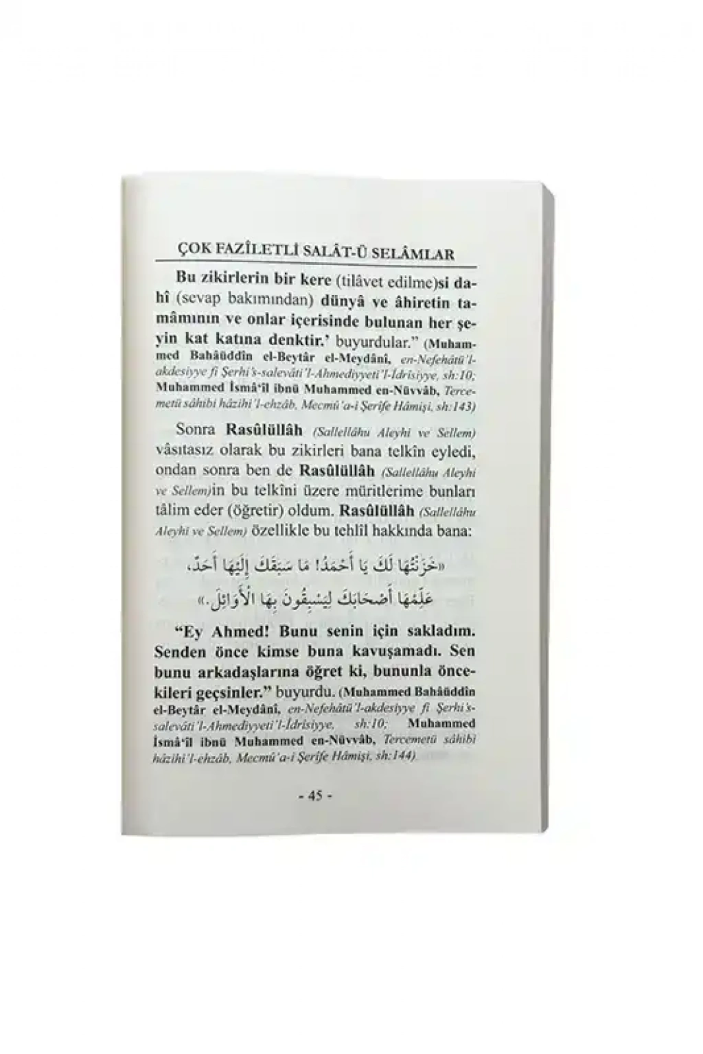 “Ey Ahmed! Ben göklerin ve yerin anahtarlarını sana verdim. İşte onlar; (diğerlerinden farklı lafızla) özel olan tehlîl, salât-ı azîmiyye ve istiğfâr-ı kebîrdir. Bu zikirlerin bir kere (tilâvet edilme)si dahi (sevap bakımından) dünya ve âhiretin tamamının ve onlar içerisinde bulunan her şeyin kat katına denktir.”
