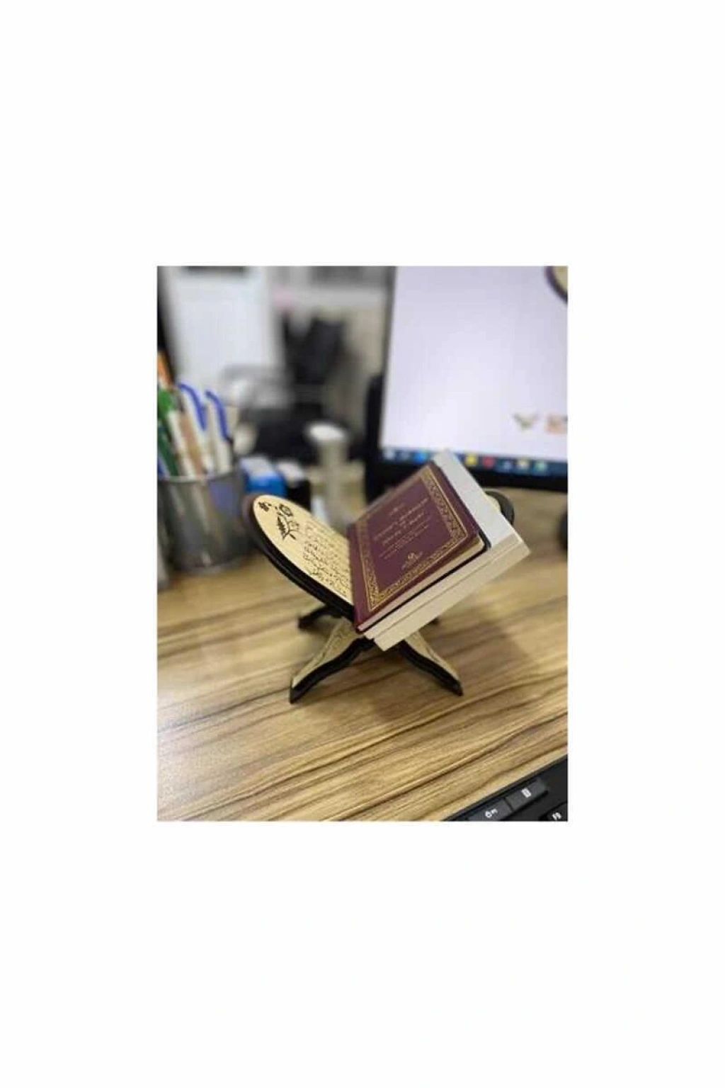Ofis ve Ev Dekorasyonlarında kullanabileceğiniz, birbirinize hediye edebileceğiniz İçerisinde Efendi Hazretleri (Kuddise Sirruhû)'mizin El Yazma Bereket Duası ve "İlimle meşgul olmak hüzün ve kederi giderir." sözünün yazdığı dekoratif Mini Kuran-ı Kerim Rahlesi.