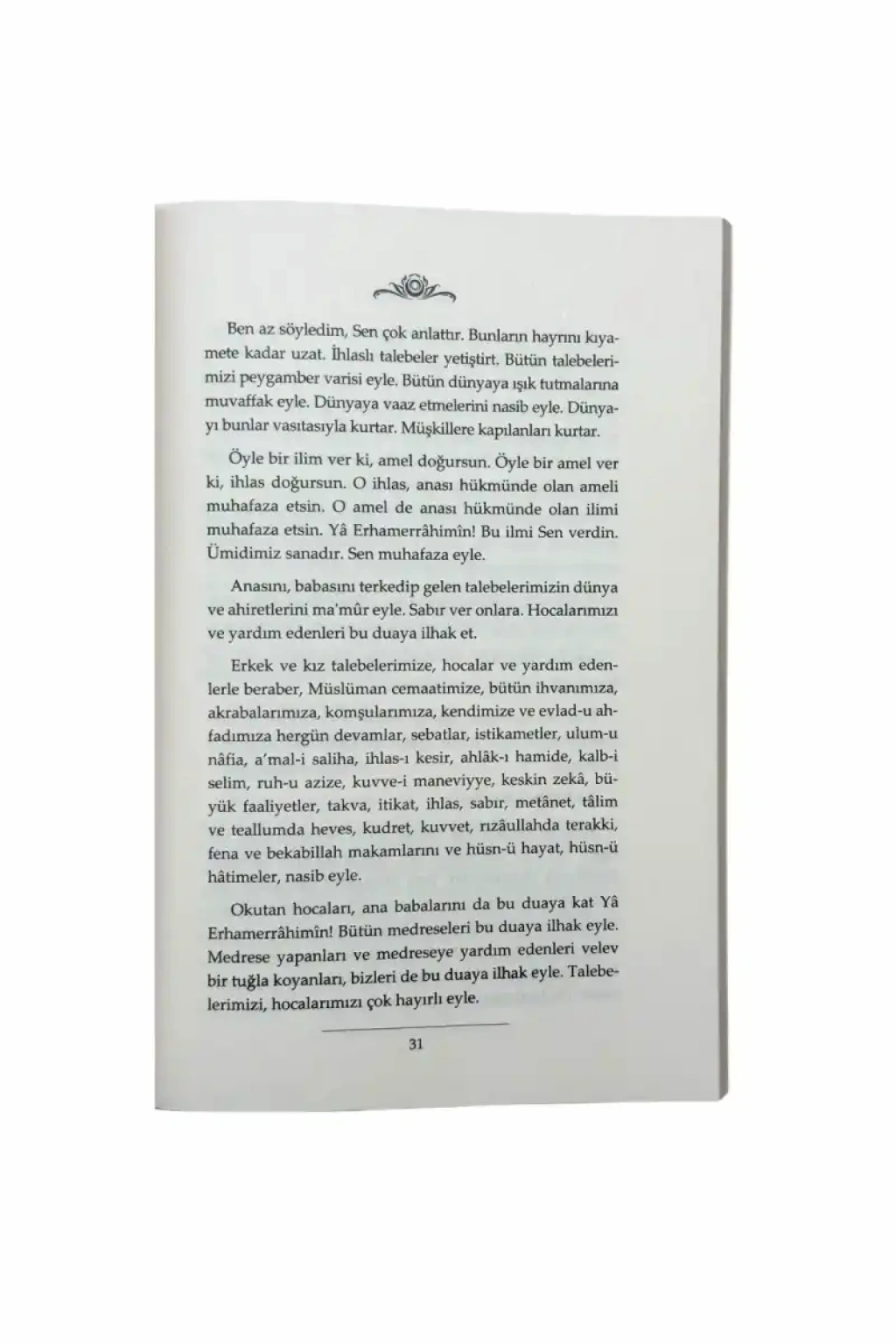 Mahmud Efendi Hazretleri'nin sohbetlerinde ve sair zamanlarda yaptığı ihlaslı duaların cem edildiği hacmi küçük fakat maneviyatı büyük bir eser..