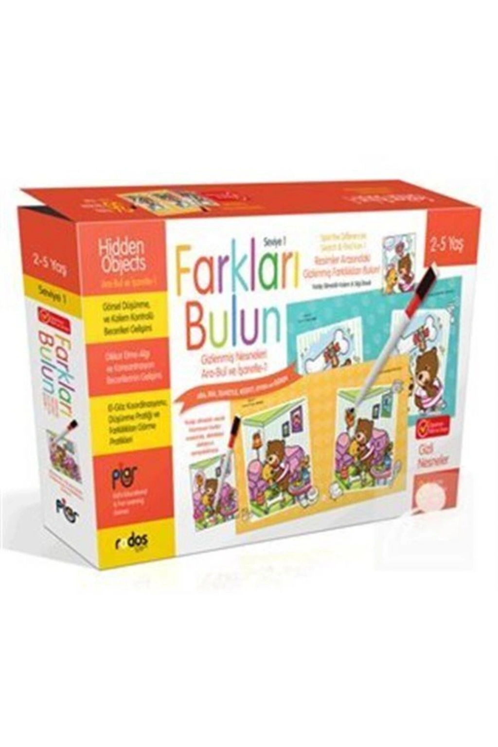 Farkları Bulun 1 - Gizli Resimler (Hidden Objects) oyun seti, 2-5 yaş arası çocukların konsantrasyon ve görsel algılarının gelişmesine, dikkat etme becerilerinin artmasına ve hafızalarının gelişimine katkı sağlayan bir oyun setidir. Bu set, çocukların yaşlarına ve gelişimlerine uygun olarak seviyeler halinde hazırlanmıştır. Çocuklar, her resimdeki farklılıkları arayarak bulurlar ve işaretlerler. Her seviyenin ayrı bir cevap anahtarı vardır ve set içinde verilmiştir.