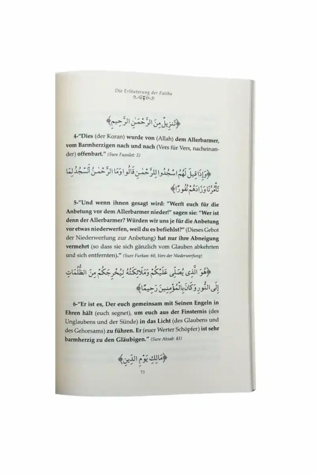 Dieses Buch, das von geringem Umfang, aber großem spirituellen Wert ist, enthält umfassende Erklärungen, Hadithe und Aussagen von Religionsältesten über Fatiha-i Sharifa, eine der tugendhaftesten Suren des Heiligen Korans, unter Verwendung von Ruhu'l-Furkan Kommentar. wurde erstellt.