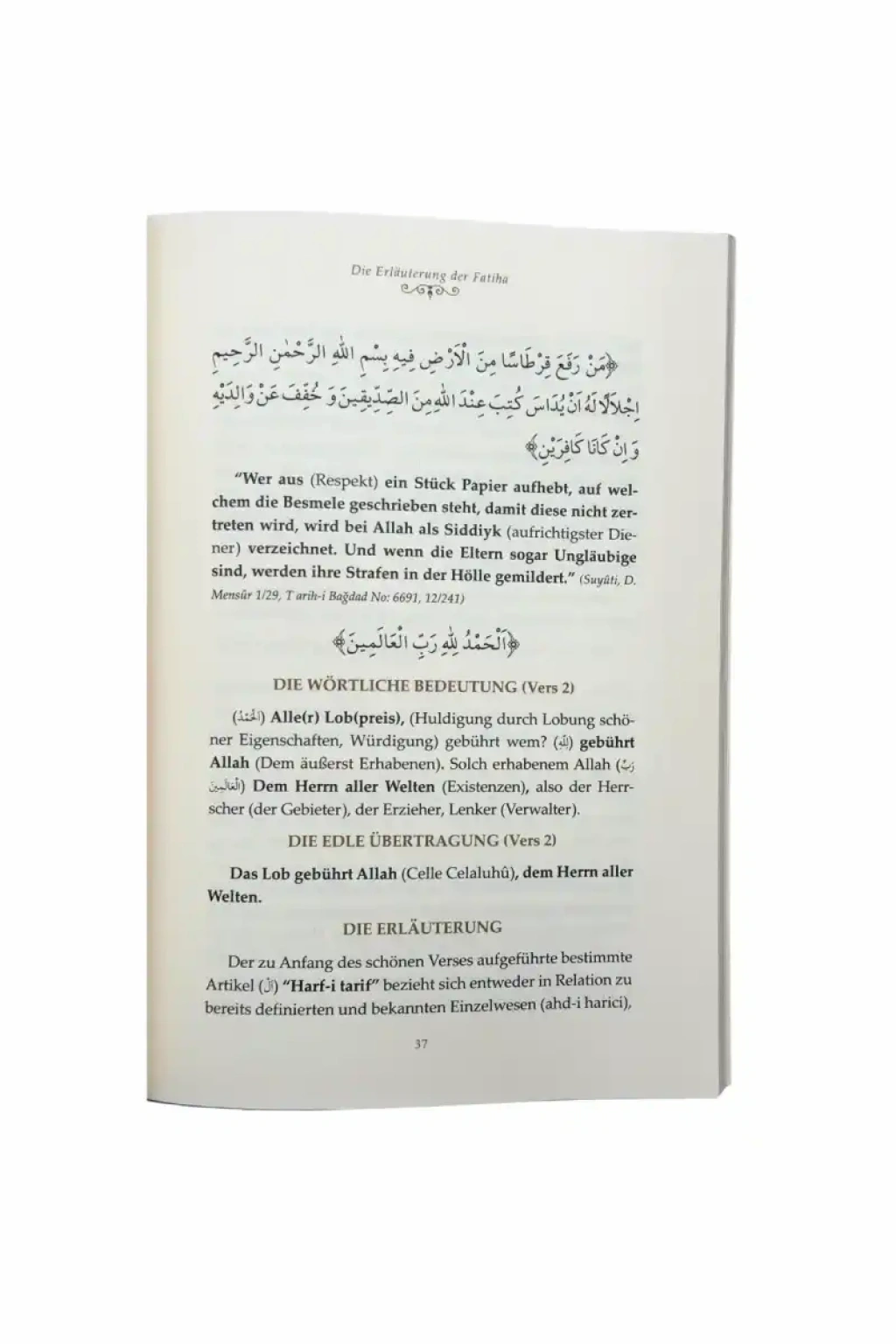 Dieses Buch, das von geringem Umfang, aber großem spirituellen Wert ist, enthält umfassende Erklärungen, Hadithe und Aussagen von Religionsältesten über Fatiha-i Sharifa, eine der tugendhaftesten Suren des Heiligen Korans, unter Verwendung von Ruhu'l-Furkan Kommentar. wurde erstellt.