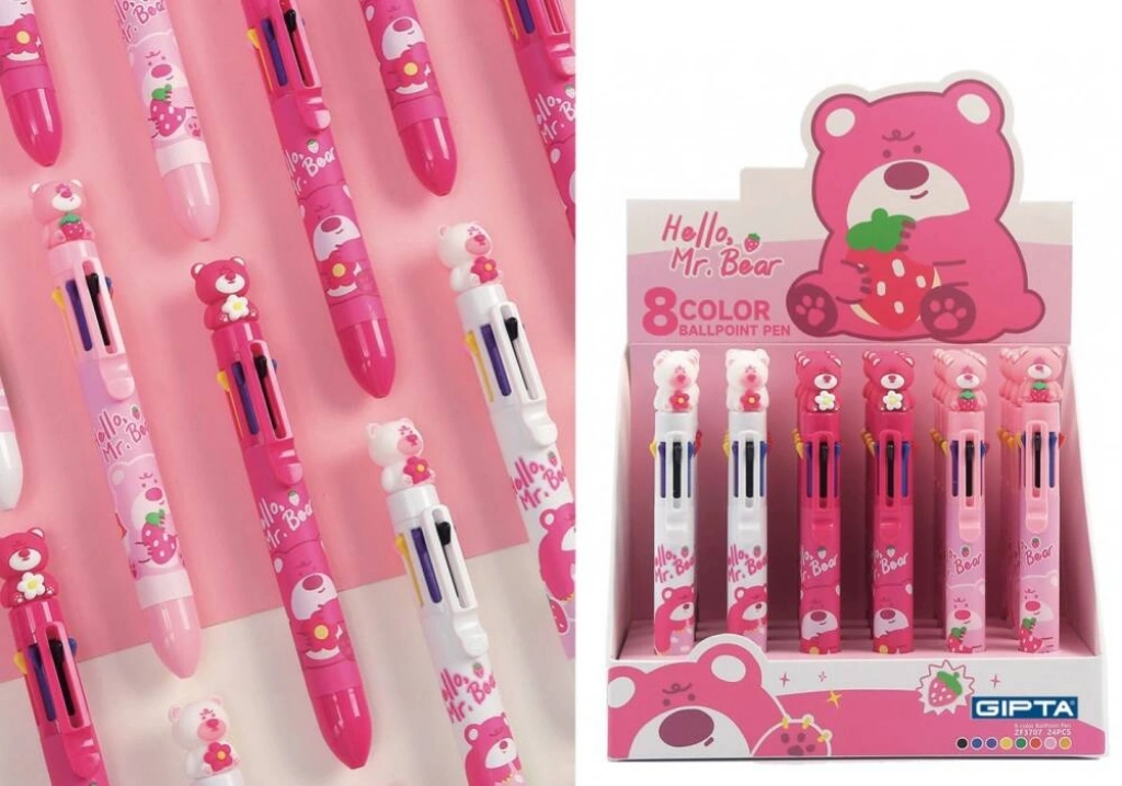 Gıpta Pink Bear Jel Tükenmez Kalem 8 Renk Birarada