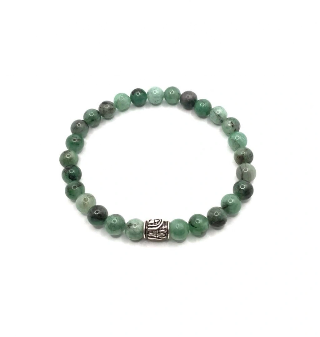Hakiki Doğal Sertifikalı Zümrüt Doğal Taş Gümüş Aparatlı Misinalı Bileklik 6mm