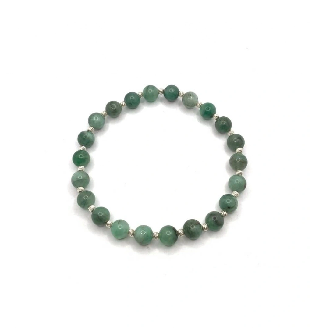 Hakiki Doğal Sertifikalı Zümrüt Doğal Taş Küçük Gümüş Aparatlı Misinalı Bileklik 6mm