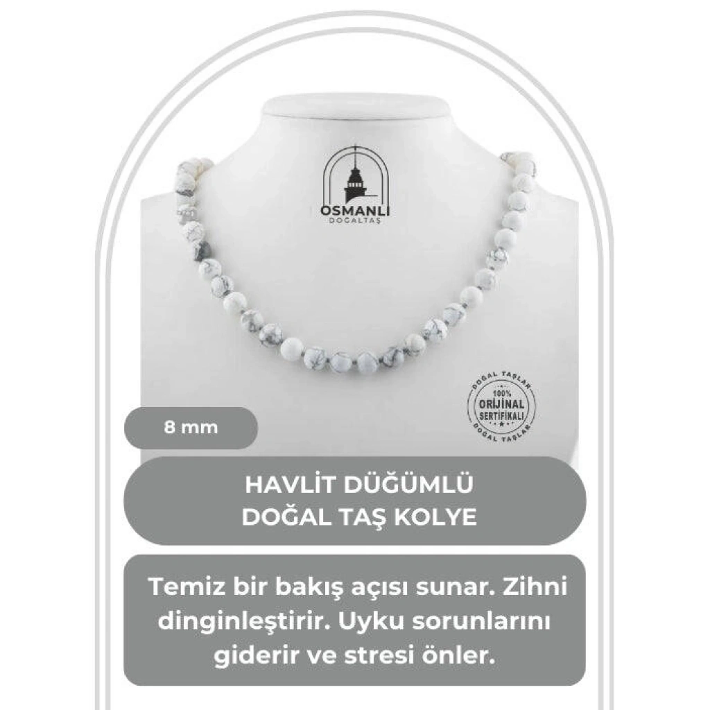TÜM TAŞLARIMIZ SERTİFİKALI ve %100 ORJİNAL GERÇEK DOĞAL TAŞTIR. Doğal taş takılarının bu eşsiz güzelliği ve faydalarıyla müşterilerimize en kaliteli ve en özel takıları sunuyoruz. Her bir takı, tasarımcılarımız tarafından özenle hazırlanmış, doğal taşların renkleri ve enerjileri ile birlikte, size en uygun olanı seçmenizi sağlar. Doğal taş takılarımız, herhangi bir moda stiline mükemmel bir şekilde uyum sağlar. Aynı zamanda doğanın eşsiz güzelliklerini keşfetmek isteyenler için de harika bir seçenek sunarlar. Kendinizi özel hissetmek istediğinizde, doğal taş takılarımız sizin için mükemmel bir seçenek olacaktır. Ürün İçeriğindeki Taşlar Aşağıda Listelenmiştir. Havlit Taşı Özellikleri: Temiz bir bakış açısı sunar. Zihni dinginleştirir. Uyku sorunlarını giderir ve stresi önler.