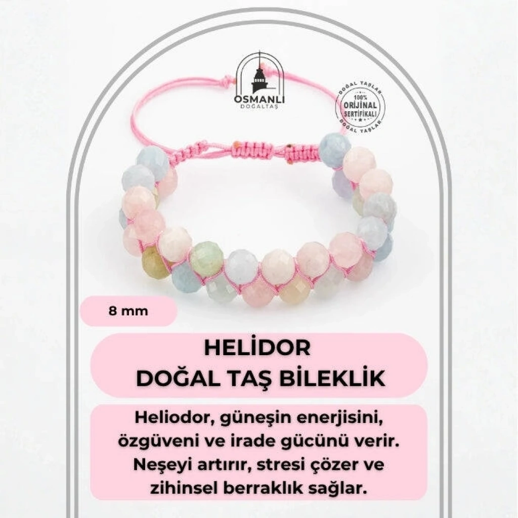 TÜM TAŞLARIMIZ SERTİFİKALI ve %100 ORJİNAL GERÇEK DOĞAL TAŞTIR. Doğal taş takılarının bu eşsiz güzelliği ve faydalarıyla müşterilerimize en kaliteli ve en özel takıları sunuyoruz. Her bir takı, tasarımcılarımız tarafından özenle hazırlanmış, doğal taşların renkleri ve enerjileri ile birlikte, size en uygun olanı seçmenizi sağlar. Doğal taş takılarımız, herhangi bir moda stiline mükemmel bir şekilde uyum sağlar. Aynı zamanda doğanın eşsiz güzelliklerini keşfetmek isteyenler için de harika bir seçenek sunarlar. Kendinizi özel hissetmek istediğinizde, doğal taş takılarımız sizin için mükemmel bir seçenek olacaktır. Ürün İçeriğindeki Taşlar Aşağıda Listelenmiştir. Helidor Taşı Özellikleri: Siniri ve gerginliği alır, yerine mutluluk verir. Hafızayı destekleyip güçlendirir. Öğrenme becerisini yükseltir.