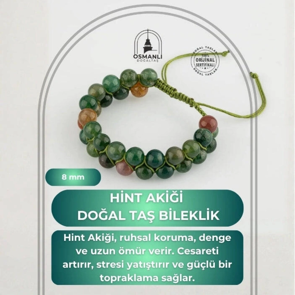 TÜM TAŞLARIMIZ SERTİFİKALI ve %100 ORJİNAL GERÇEK DOĞAL TAŞTIR. Doğal taş takılarının bu eşsiz güzelliği ve faydalarıyla müşterilerimize en kaliteli ve en özel takıları sunuyoruz. Her bir takı, tasarımcılarımız tarafından özenle hazırlanmış, doğal taşların renkleri ve enerjileri ile birlikte, size en uygun olanı seçmenizi sağlar. Doğal taş takılarımız, herhangi bir moda stiline mükemmel bir şekilde uyum sağlar. Aynı zamanda doğanın eşsiz güzelliklerini keşfetmek isteyenler için de harika bir seçenek sunarlar. Kendinizi özel hissetmek istediğinizde, doğal taş takılarımız sizin için mükemmel bir seçenek olacaktır. Ürün İçeriğindeki Taşlar Aşağıda Listelenmiştir. Hint Akik Taşı Özellikleri: Sosyalleştirir. Yaratıcılığı, aklı ve mantığı besler. Cesareti artırır, korkuların yenilmesine yardımcı olur. Odaklanmayı artırır. Pozitif enerji verir: Rahatlatır. Stresi Giderir.