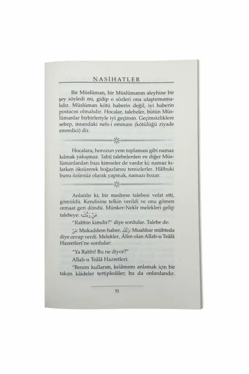 “Öğüt vermeye devam et! Çünkü vaaz-u nasihat, inanan kimselere ve Allâh’ın iman nasip edeceklerine gerçekten fayda verir.” (Zâriyât Sûresi, 55) ayet-i kerimesi mucebince, talebe ve ilim ehline bir hatırlatma olması temennisi ile hazır- lanmıştır.