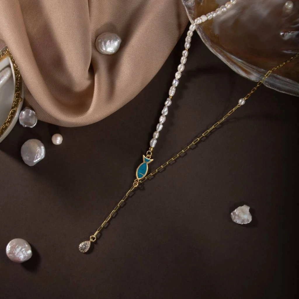 İnci Doğal Taş Gümüş Zincir Kolye