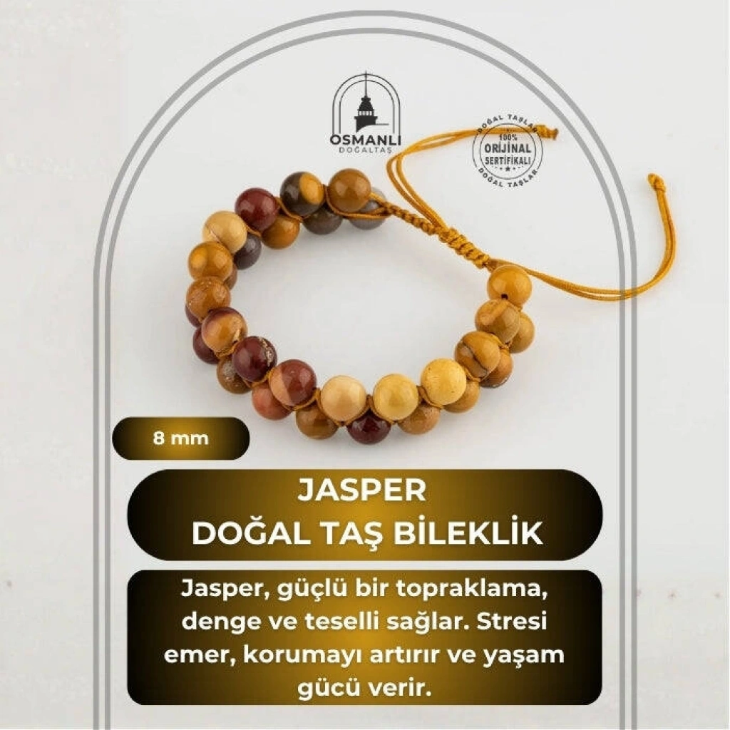TÜM TAŞLARIMIZ SERTİFİKALI ve %100 ORJİNAL GERÇEK DOĞAL TAŞTIR. Doğal taş takılarının bu eşsiz güzelliği ve faydalarıyla müşterilerimize en kaliteli ve en özel takıları sunuyoruz. Her bir takı, tasarımcılarımız tarafından özenle hazırlanmış, doğal taşların renkleri ve enerjileri ile birlikte, size en uygun olanı seçmenizi sağlar. Doğal taş takılarımız, herhangi bir moda stiline mükemmel bir şekilde uyum sağlar. Aynı zamanda doğanın eşsiz güzelliklerini keşfetmek isteyenler için de harika bir seçenek sunarlar. Kendinizi özel hissetmek istediğinizde, doğal taş takılarımız sizin için mükemmel bir seçenek olacaktır. Ürün İçeriğindeki Taşlar Aşağıda Listelenmiştir. Jasper Taşı Özellikleri: İnsanı, gelecek ve geçmişe yönelik kaygılardan uzaklaştırır, bugüne ve geleceğe rahat bir şekilde odaklanılmasını sağlar. Cinsel gücü artırır.