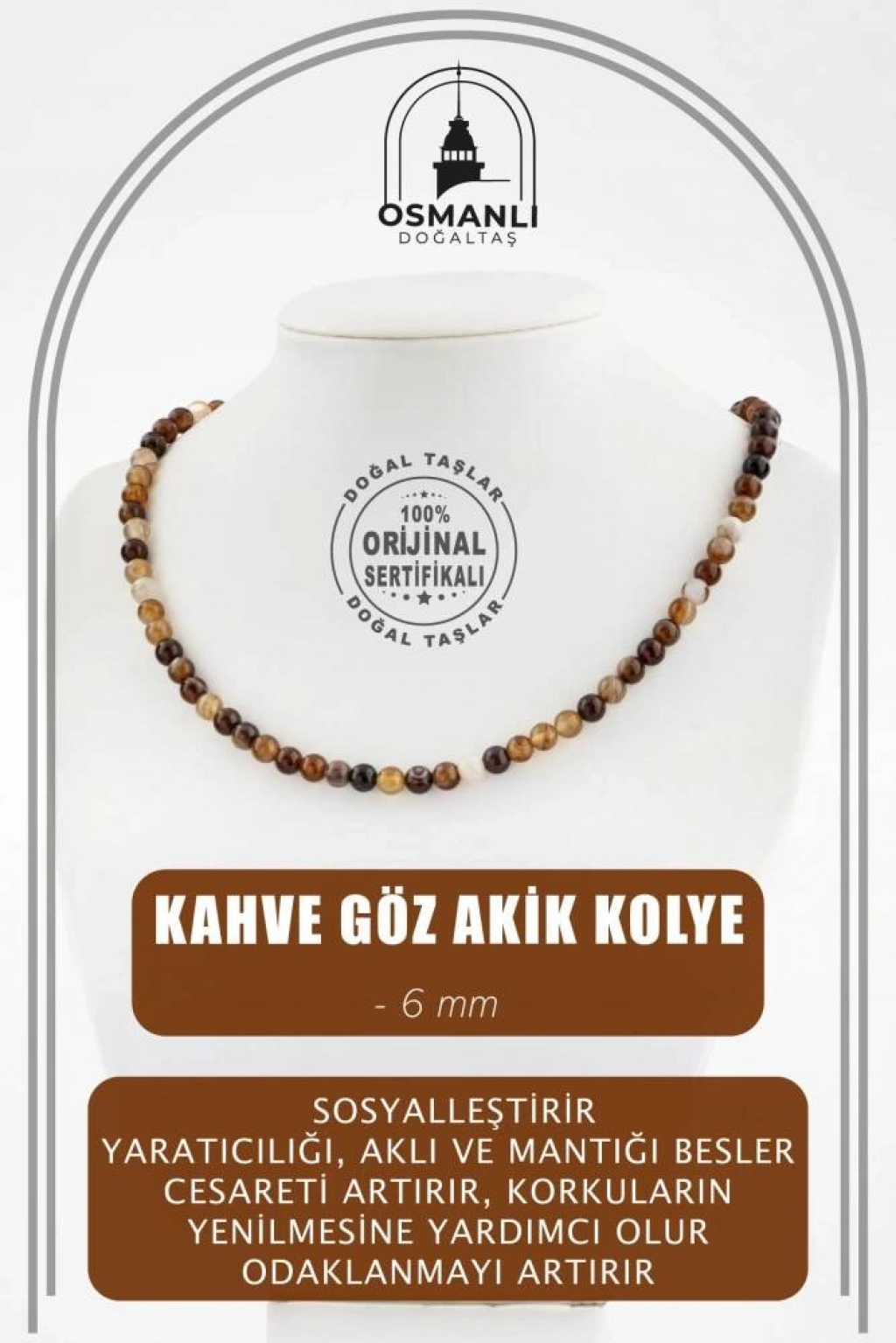 TÜM TAŞLARIMIZ SERTİFİKALI ve %100 ORJİNAL GERÇEK DOĞAL TAŞTIR. Doğal taş takılarının bu eşsiz güzelliği ve faydalarıyla müşterilerimize en kaliteli ve en özel takıları sunuyoruz. Her bir takı, tasarımcılarımız tarafından özenle hazırlanmış, doğal taşların renkleri ve enerjileri ile birlikte, size en uygun olanı seçmenizi sağlar. Doğal taş takılarımız, herhangi bir moda stiline mükemmel bir şekilde uyum sağlar. Aynı zamanda doğanın eşsiz güzelliklerini keşfetmek isteyenler için de harika bir seçenek sunarlar. Kendinizi özel hissetmek istediğinizde, doğal taş takılarımız sizin için mükemmel bir seçenek olacaktır. Ürün İçeriğindeki Taşlar Aşağıda Listelenmiştir. Kahve Göz Akik Taşı Özellikleri: Sosyalleştirir. Yaratıcılığı, aklı ve mantığı besler. Cesareti artırır, korkuların yenilmesine yardımcı olur. Odaklanmayı artırır. Pozitif enerji verir: Rahatlatır. Stresi Giderir. BİLGİ: Doğal taşların faydaları günümüzde birçok kullanıcıdan alınan geri dönüşlerde defeatle gözlemlenmiştir. Kan dolaşımına ve sindirim sistemine bir ilaç gibi dahil edilememesi; enerjileri ve kullanımı açısından sunacağı faydaya inanma ön koşulu gerektirmesiyle kesinlikle bir ilaç mahiyetinde değildir. Fakat geçmişten günümüze Biruni ve İbn-i Sina gibi büyük tıp alimleri doğal taşlar üzerinde düşünmüş, araştırmış ve geliştirdikleri tedavi yöntemlerine dahil etmişlerdir.Doğal taşların faydaları bilimsel bir deney-gözlem sürecinden ziyade geçmişte yaşayan toplumların ve tıp alimlerinin kullanım amaçlarına istinaden belirlenmekte, tespit edilmektedir. Bil biliyoruz ki şifa sadece Allah’tandır. Nereden ve nasıl geleceği belli olmaz. KAYNAK: Osmanlı Doğaltaş taşların özellikleri ve kullanım bilgileri için aşağıdaki kaynaklardan faydalanmaktadır.Walter Schumann, Gemstones Of The World (Sterling Yayın Evi, 17. Baskı).Judy Hall, Değerli Taşlar Kitabı (Alfa Basım Yayın, 3. Basım, 2021)Muhammed Bin Mahmud-ı Şirvani, Tuhfe-i Muradi. Hazırlayan: Mustafa Argunşah (Türk Dil Kurumu, 1999)Patrick Voillot, Elmaslar ve Değerli Taşlar (Yapı Kredi Yayınları, 1. Baskı, 2013)
