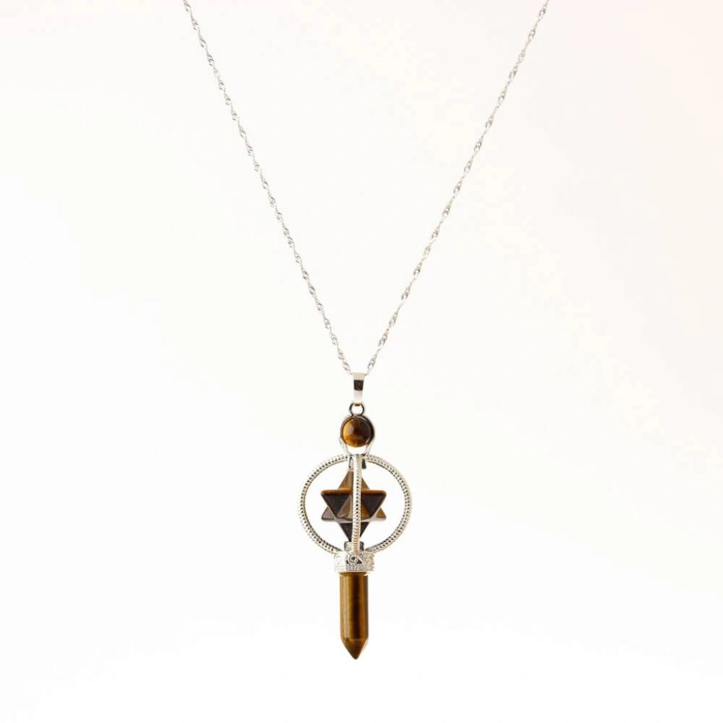 Kaplan Gözü Doğal Taş Markapon Yıldızlı Kolye, Gümüş Zincir