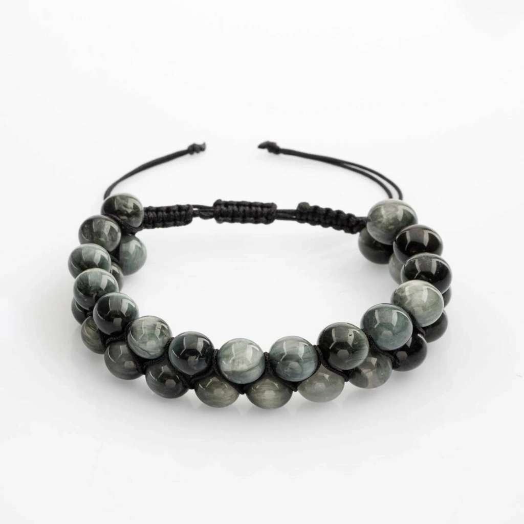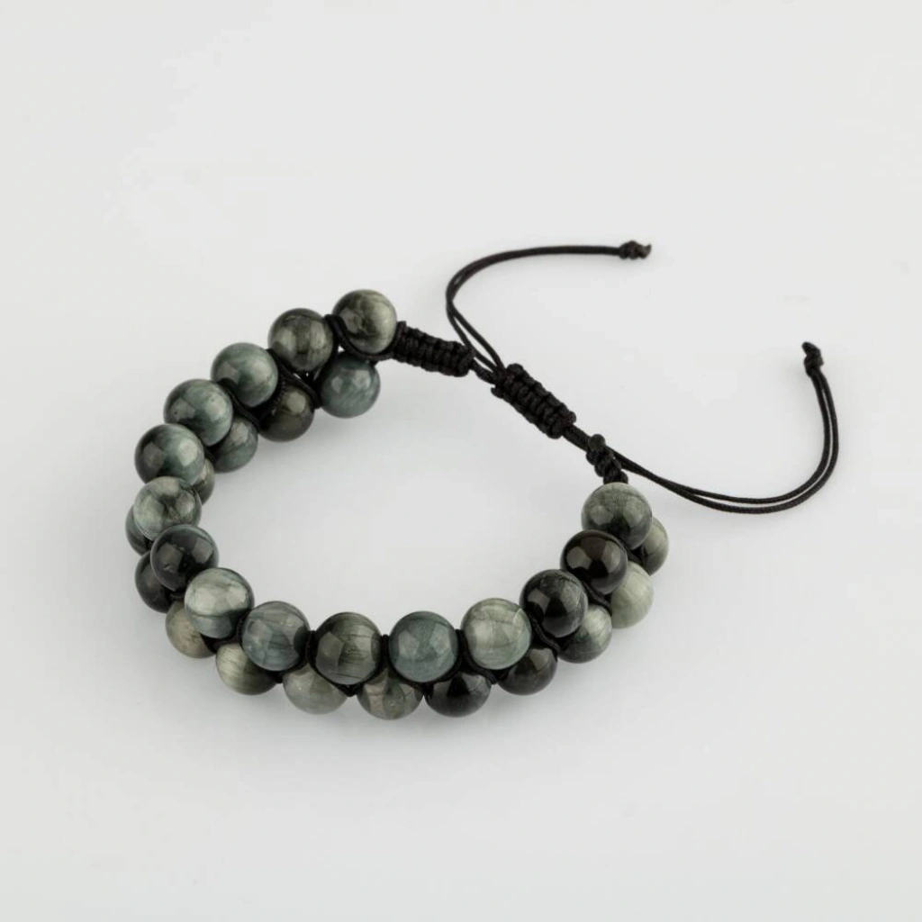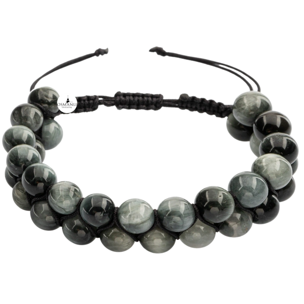 Kedi Gözü 8mm Çift Sıra Makrome Doğal Taş Bileklik