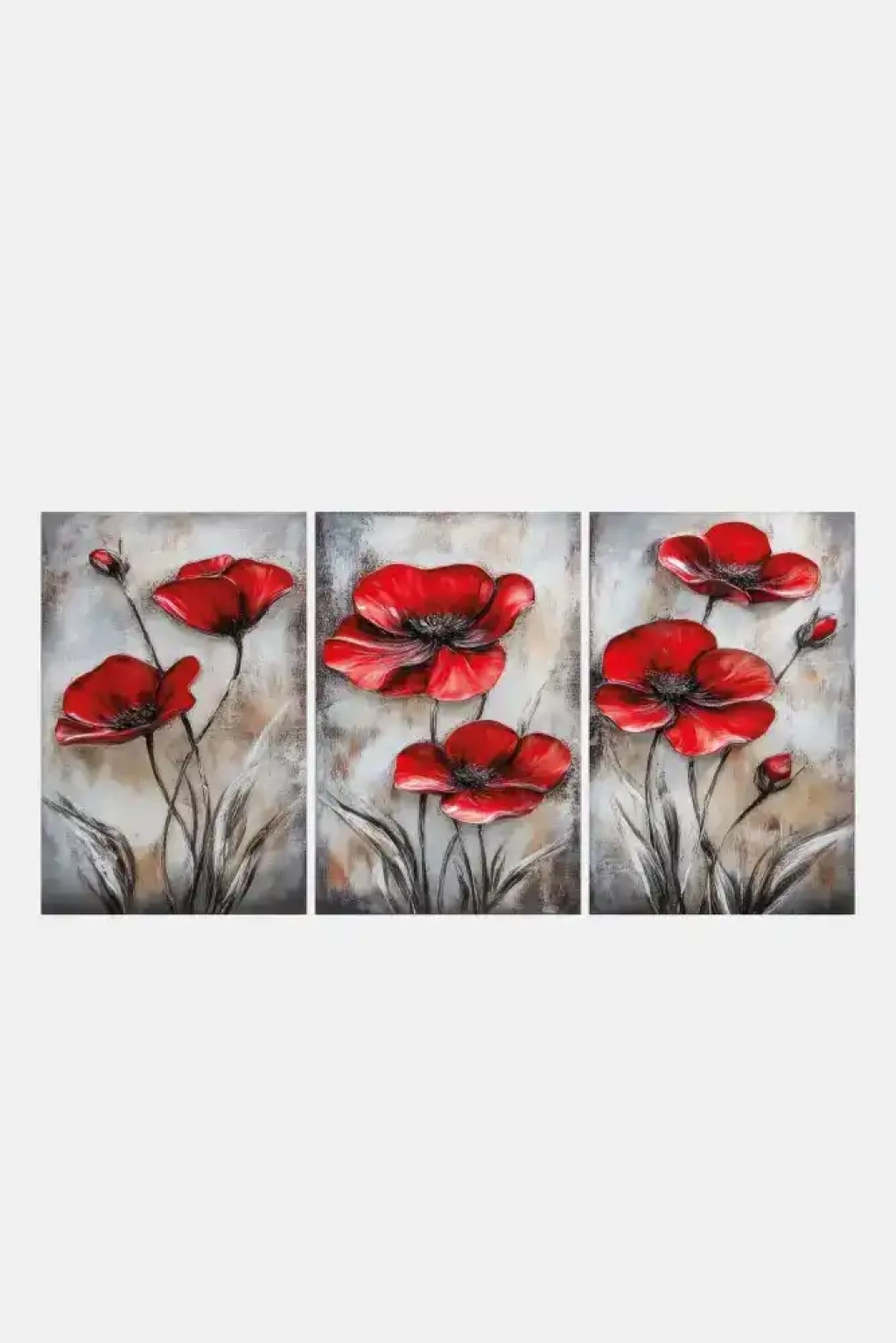 Set İçeriği: 3 adet tablo (kırmızı çiçek desenli tasarımlar)