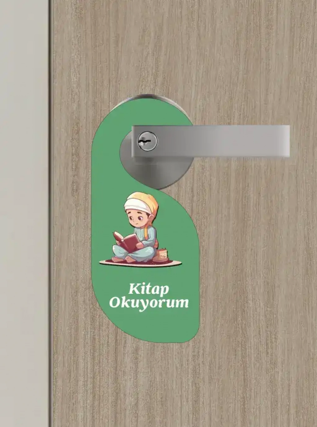 “Okuma keyfinizi kesintiye uğratmayın! Kapınıza asın, herkes bilsin: Kitap Okuyorum. ?✨”