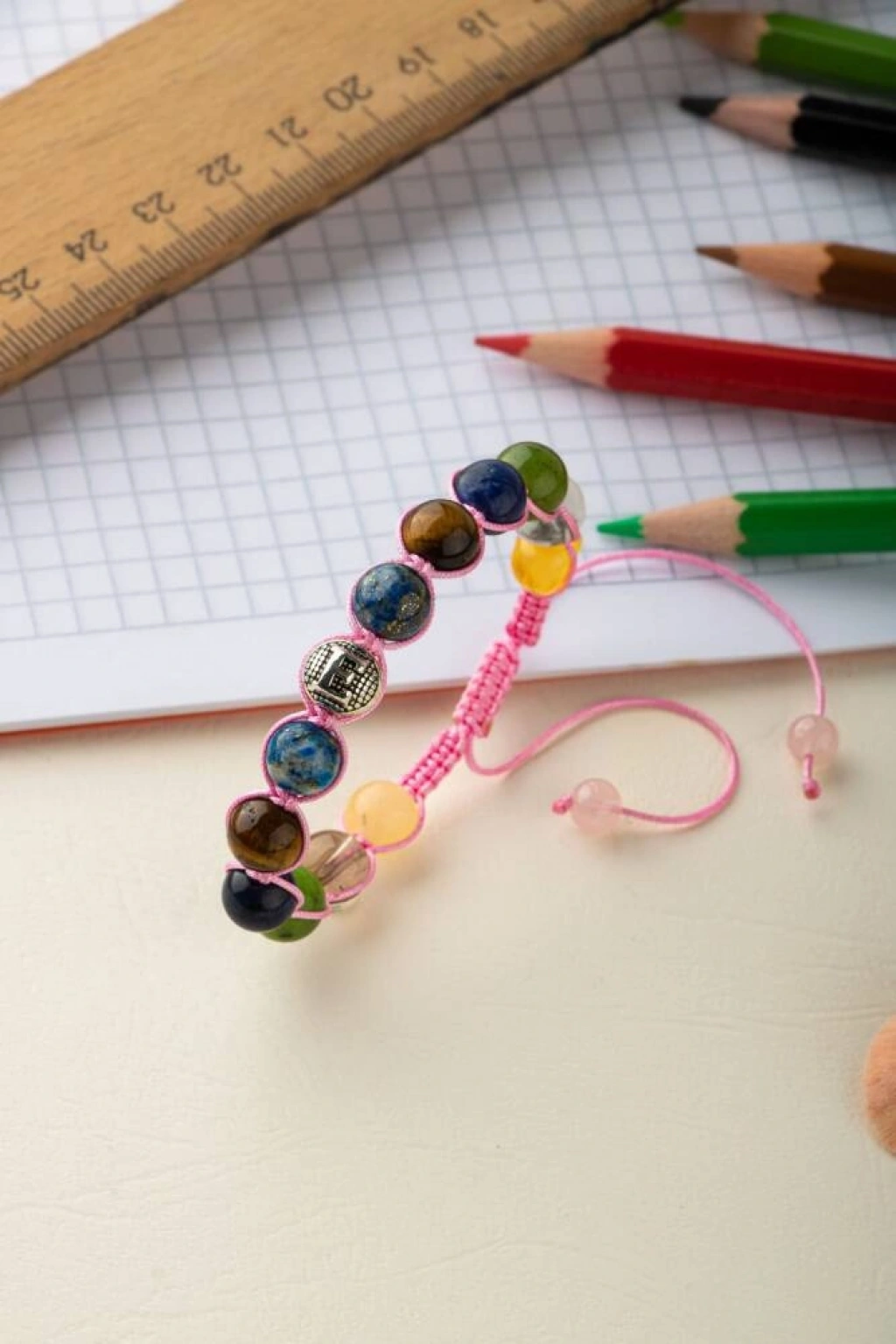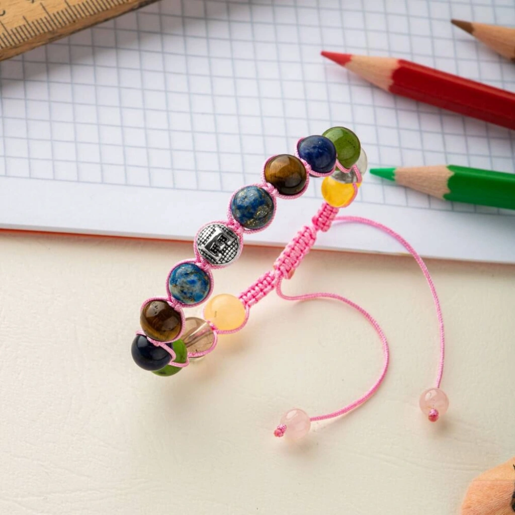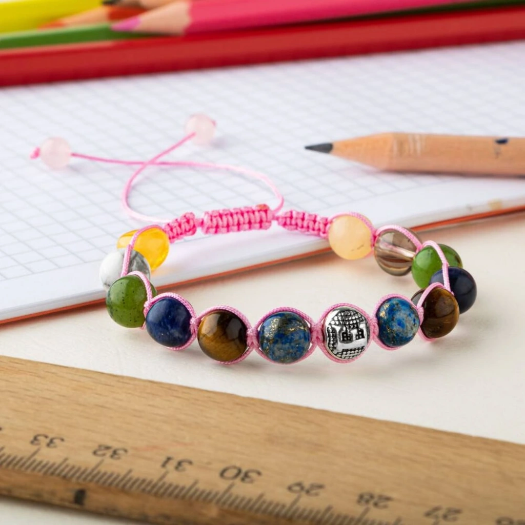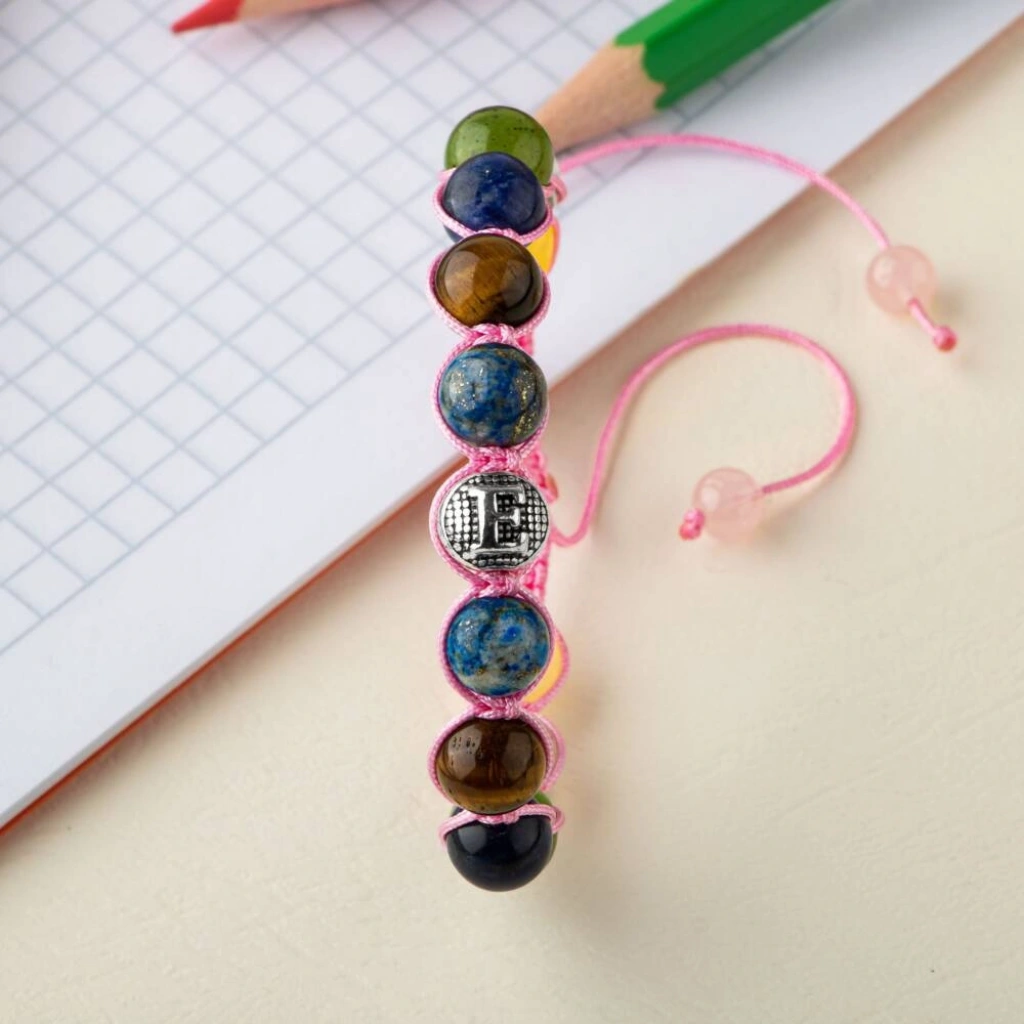 Kız Öğrenci Doğal Taş Harfli Makrome Bileklik