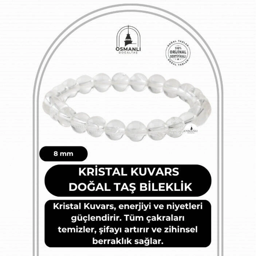 Kristal Kuvars 8mm Doğal Taş Bileklik