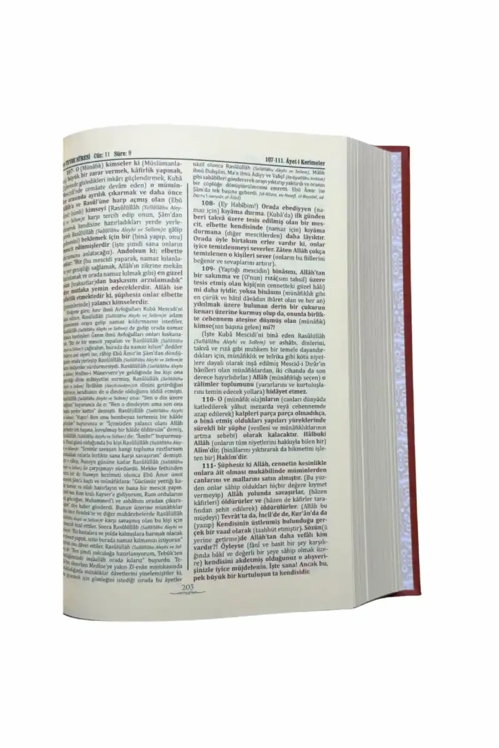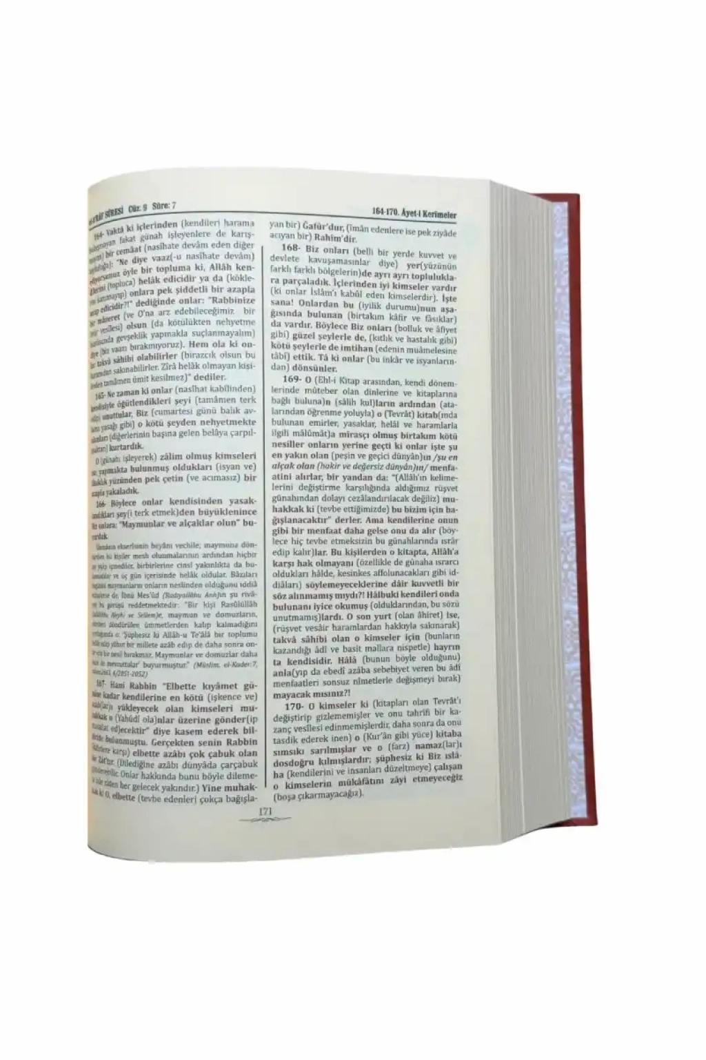4- Evvelce tıpa tıp mânâ vermeye çok önem verdiğimiz sizlerin de mâlûmudur. Dolayısıyla metinde olan bir kelimeyi hâriçte bırakmadık, metinde olmayan bir şeyi de bolt (koyu renkli) olan metne ilâve etmedik. Fakat ne kadar olsa her gözden geçirilişte bâzı şeylerin kaçtığına rastlanmaktadır. Bu baskıda Kur’ân-ı Kerîm’in başından sonuna kadar tekrar metin ve terceme muvâfakatını inceden inceye tahkîk ettik. Bâzı parantezlerde bulunan uzun ifâdelerden dolayı anlaşma zorluğu çıkaracak yerlerde daha kısa ifâdelerle iktifâ ederek sizlerin anlamanıza kolaylık sağlamayı murâd ettik.