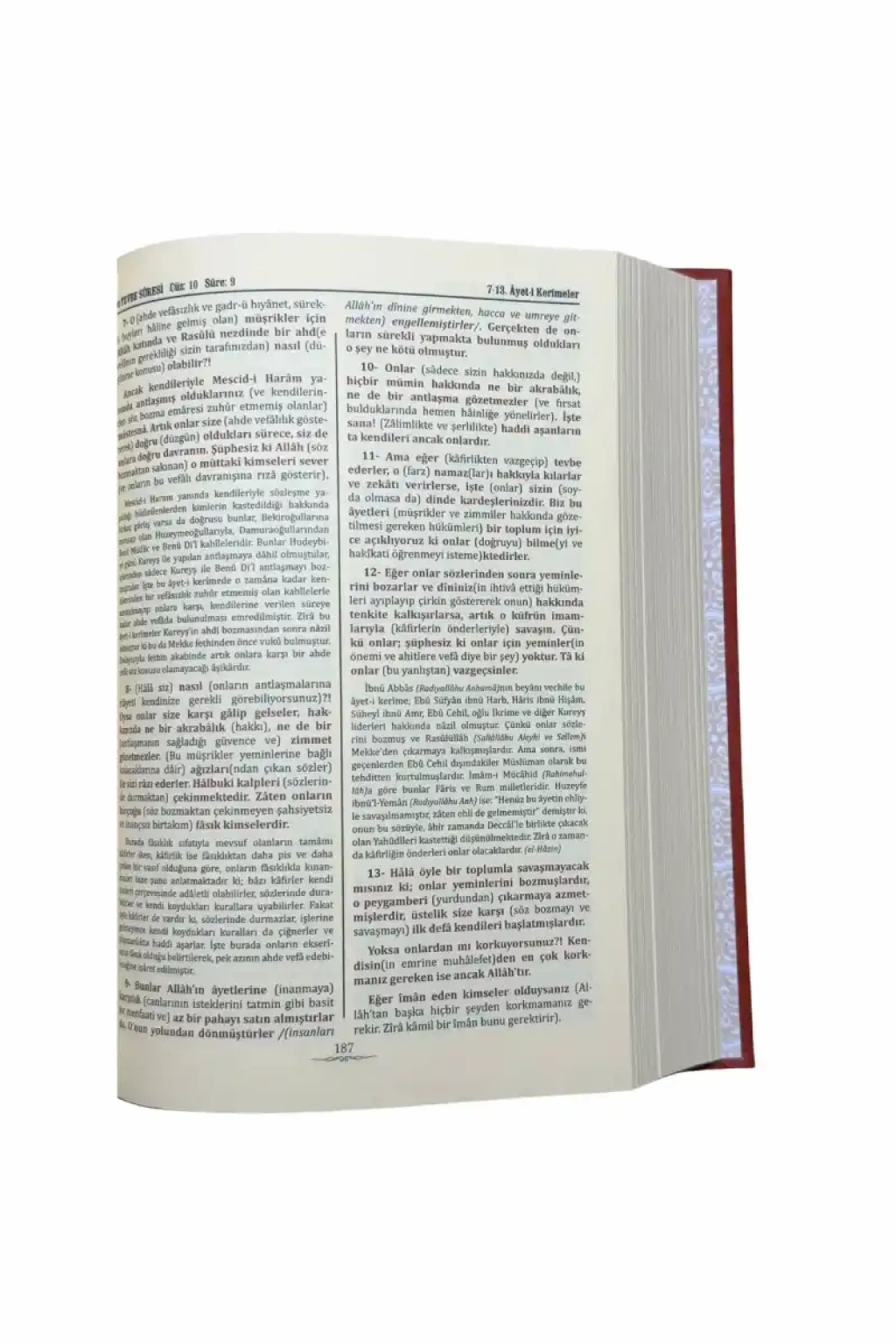 4- Evvelce tıpa tıp mânâ vermeye çok önem verdiğimiz sizlerin de mâlûmudur. Dolayısıyla metinde olan bir kelimeyi hâriçte bırakmadık, metinde olmayan bir şeyi de bolt (koyu renkli) olan metne ilâve etmedik. Fakat ne kadar olsa her gözden geçirilişte bâzı şeylerin kaçtığına rastlanmaktadır. Bu baskıda Kur’ân-ı Kerîm’in başından sonuna kadar tekrar metin ve terceme muvâfakatını inceden inceye tahkîk ettik. Bâzı parantezlerde bulunan uzun ifâdelerden dolayı anlaşma zorluğu çıkaracak yerlerde daha kısa ifâdelerle iktifâ ederek sizlerin anlamanıza kolaylık sağlamayı murâd ettik.