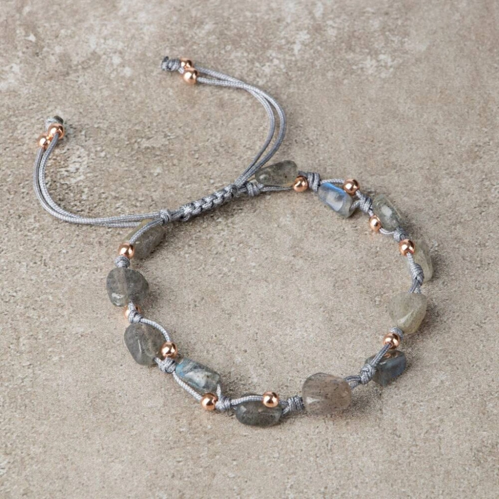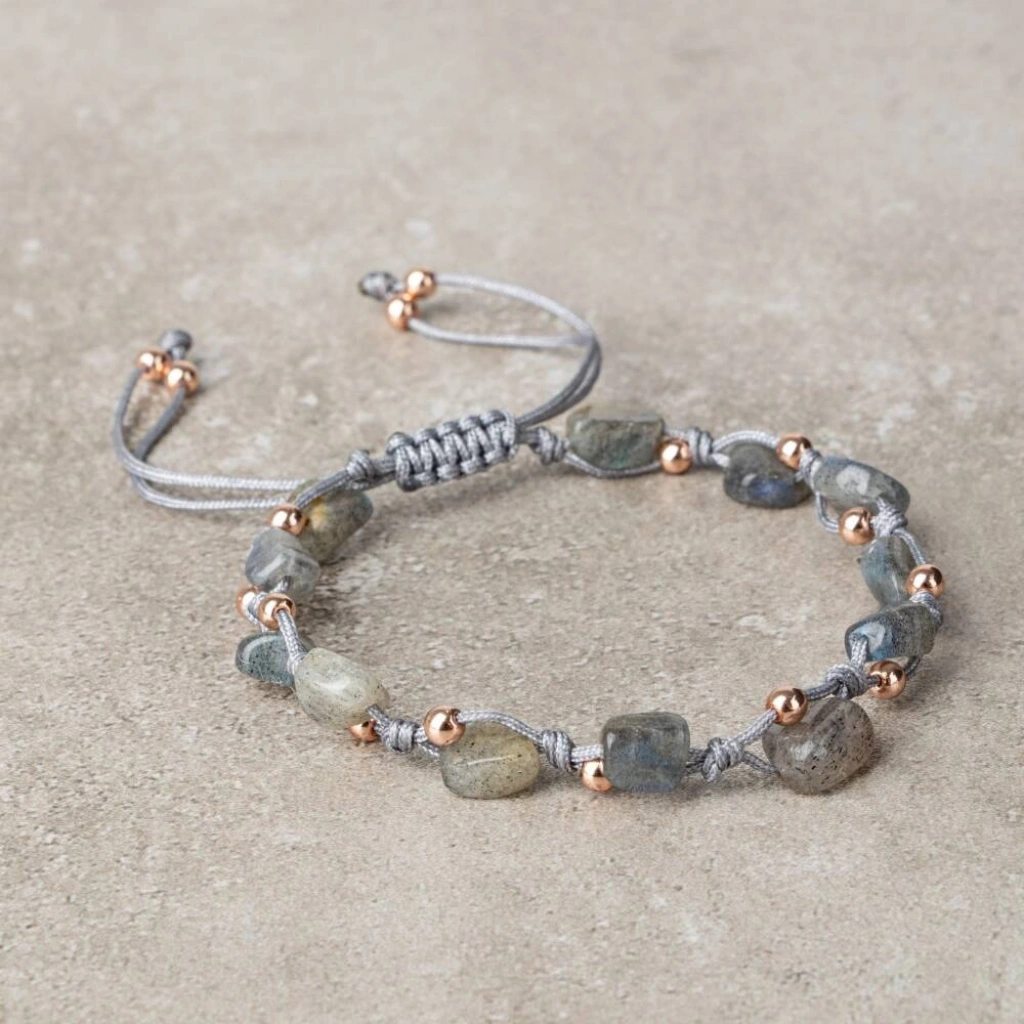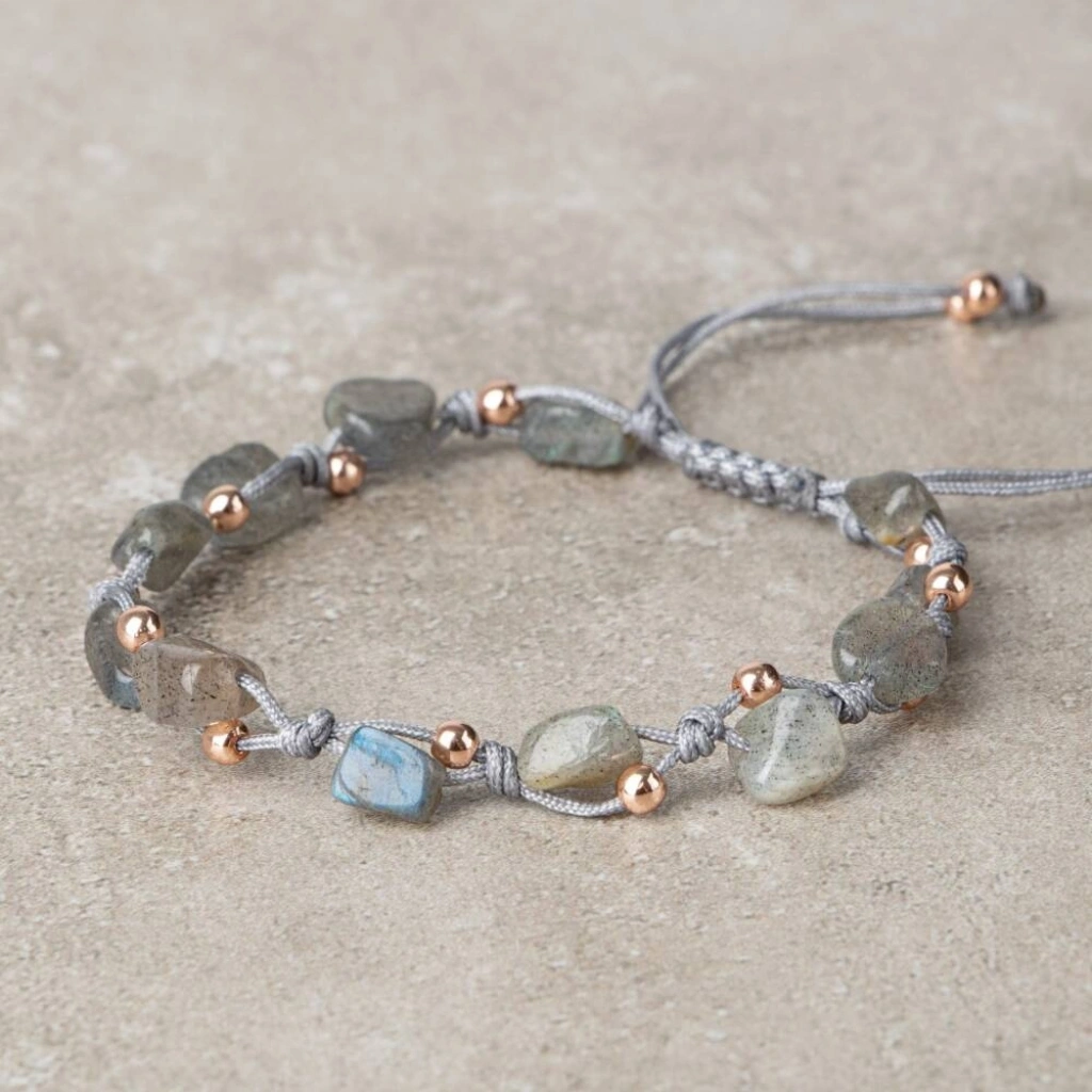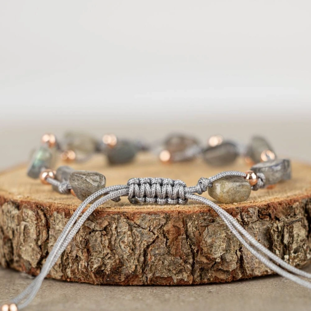 Labradorit Natürel Kesim Doğal Taş Makrome Bileklik