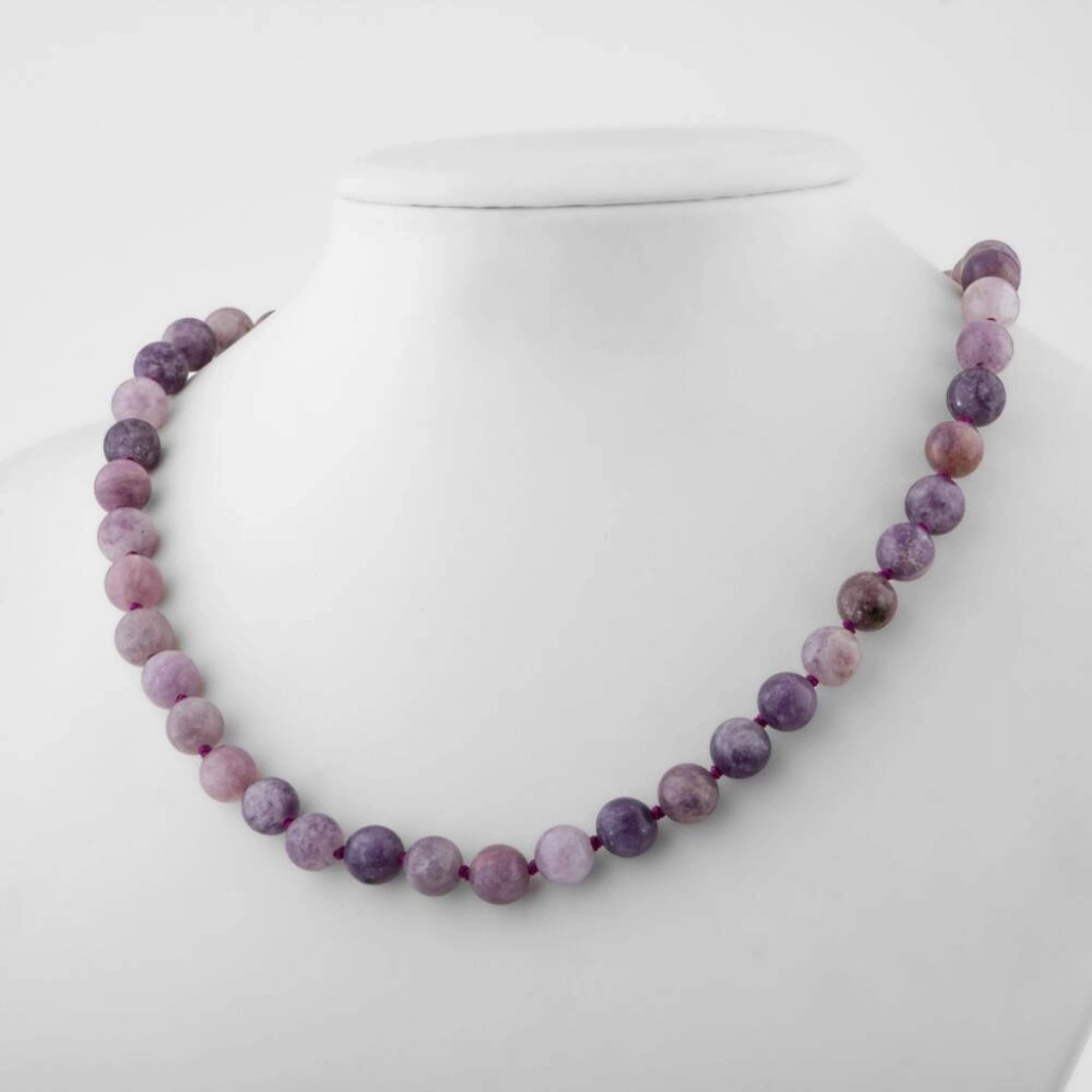Lepidolit 8 mm Düğümlü Doğal Taş Kolye