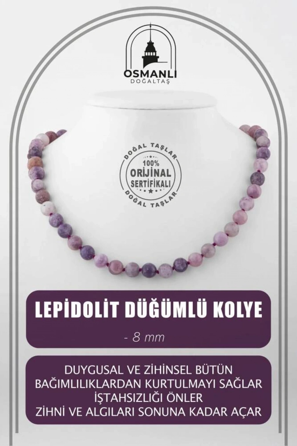 TÜM TAŞLARIMIZ SERTİFİKALI ve %100 ORJİNAL GERÇEK DOĞAL TAŞTIR. Doğal taş takılarının bu eşsiz güzelliği ve faydalarıyla müşterilerimize en kaliteli ve en özel takıları sunuyoruz. Her bir takı, tasarımcılarımız tarafından özenle hazırlanmış, doğal taşların renkleri ve enerjileri ile birlikte, size en uygun olanı seçmenizi sağlar. Doğal taş takılarımız, herhangi bir moda stiline mükemmel bir şekilde uyum sağlar. Aynı zamanda doğanın eşsiz güzelliklerini keşfetmek isteyenler için de harika bir seçenek sunarlar. Kendinizi özel hissetmek istediğinizde, doğal taş takılarımız sizin için mükemmel bir seçenek olacaktır. Ürün İçeriğindeki Taşlar Aşağıda Listelenmiştir. Lepidolit Taşı Özellikleri: Duygusal ve zihinsel bütün bağımlılıklardan kurtulmayı sağlar. İştahsızlığı önler. Zihni ve algıları sonuna kadar açar. Stresi, gerginliği uzaklaştırır.