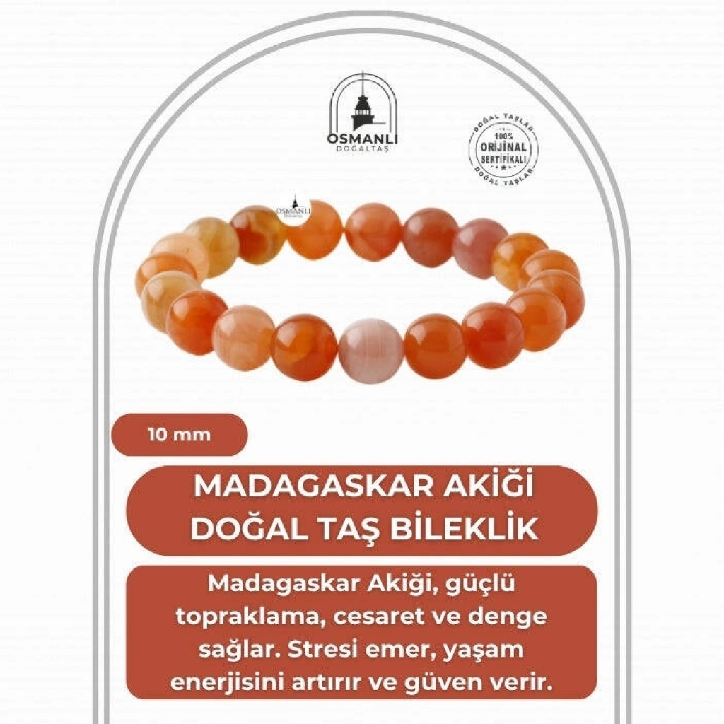 TÜM TAŞLARIMIZ SERTİFİKALI ve %100 ORJİNAL GERÇEK DOĞAL TAŞTIR. Doğal taş takılarının bu eşsiz güzelliği ve faydalarıyla müşterilerimize en kaliteli ve en özel takıları sunuyoruz. Her bir takı, tasarımcılarımız tarafından özenle hazırlanmış, doğal taşların renkleri ve enerjileri ile birlikte, size en uygun olanı seçmenizi sağlar. Doğal taş takılarımız, herhangi bir moda stiline mükemmel bir şekilde uyum sağlar. Aynı zamanda doğanın eşsiz güzelliklerini keşfetmek isteyenler için de harika bir seçenek sunarlar. Kendinizi özel hissetmek istediğinizde, doğal taş takılarımız sizin için mükemmel bir seçenek olacaktır. Ürün İçeriğindeki Taşlar Aşağıda Listelenmiştir. Madagaskar Akik Taşı Özellikleri: Sosyalleştirir. Yaratıcılığı, aklı ve mantığı besler. Cesareti artırır, korkuların yenilmesine yardımcı olur. Odaklanmayı artırır. Pozitif enerji verir: Rahatlatır. Stresi Giderir.