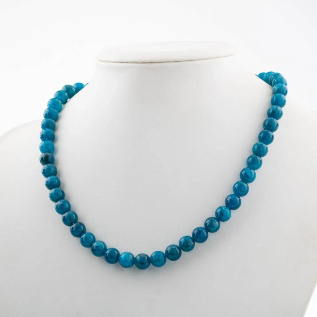 Mavi Apatit 8 mm Dizi Doğal Taş Kolye