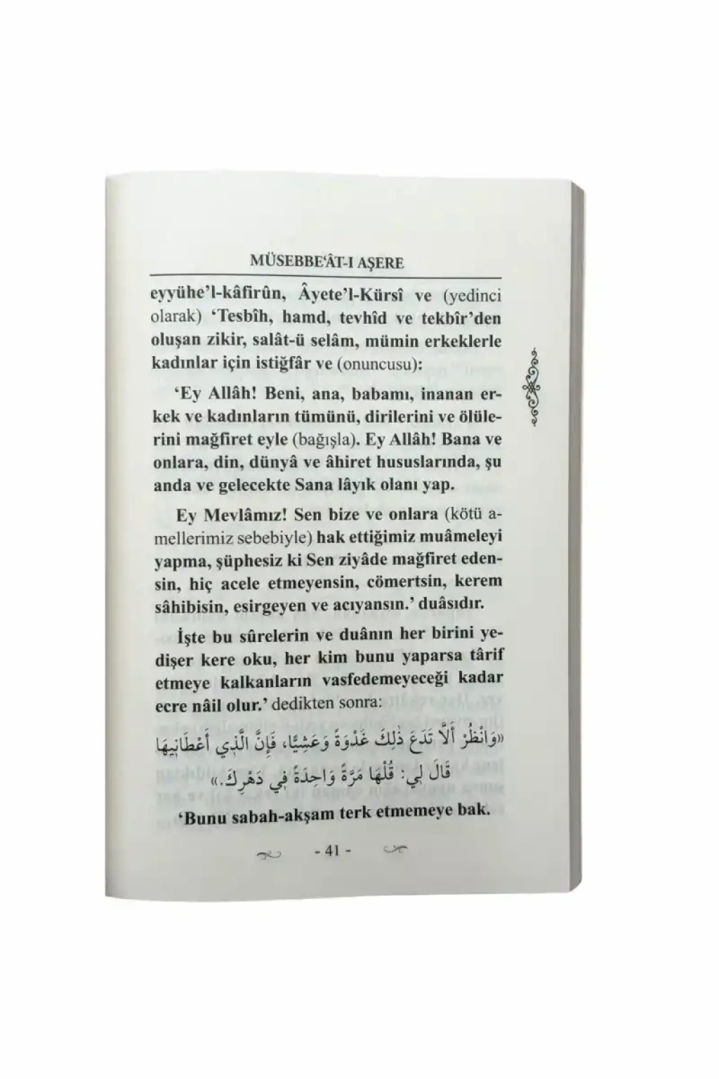 Büyük günahları dahi affettirecek ve imansız ölmekten koruyacak Müsebbe'ât-ı Aşere (Yedi kere tekrarlanan on zikir) Müsebbe’ât-ı Aşere virdi hakkında İmâm-ı Cezûlî (Rahimehullâh) şöyle demiştir: “Bu vird dünyevî ve uhrevî bütün ehvâlin (dehşet ve belâların) defi için hazırlanmış ve her musîbetin keşfi için tertip edilmiş çok mühim ehzâbdan (virdlerden sayılmış)dır.” (Ahmed es-Sâvî el-Mâlikî el-Halvetî, el-Esrâru’r-Rabbâniyye ‘ale’s-Selevâti’d-Derdiriyye, sh:8)