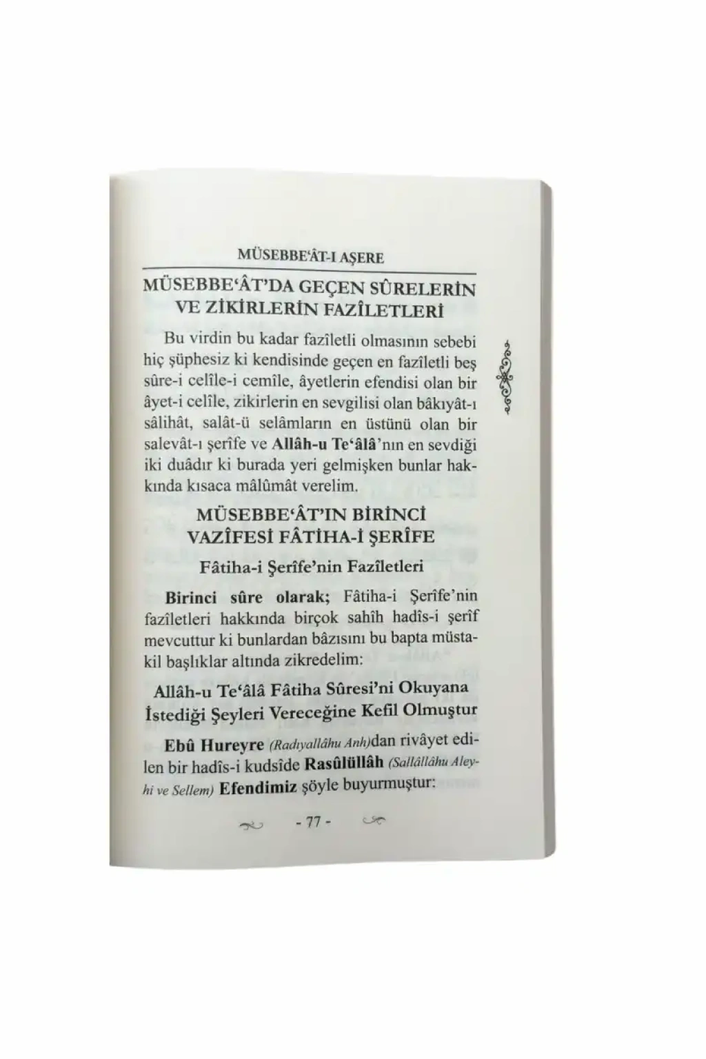 Büyük günahları dahi affettirecek ve imansız ölmekten koruyacak Müsebbe'ât-ı Aşere (Yedi kere tekrarlanan on zikir) Müsebbe’ât-ı Aşere virdi hakkında İmâm-ı Cezûlî (Rahimehullâh) şöyle demiştir: “Bu vird dünyevî ve uhrevî bütün ehvâlin (dehşet ve belâların) defi için hazırlanmış ve her musîbetin keşfi için tertip edilmiş çok mühim ehzâbdan (virdlerden sayılmış)dır.” (Ahmed es-Sâvî el-Mâlikî el-Halvetî, el-Esrâru’r-Rabbâniyye ‘ale’s-Selevâti’d-Derdiriyye, sh:8)