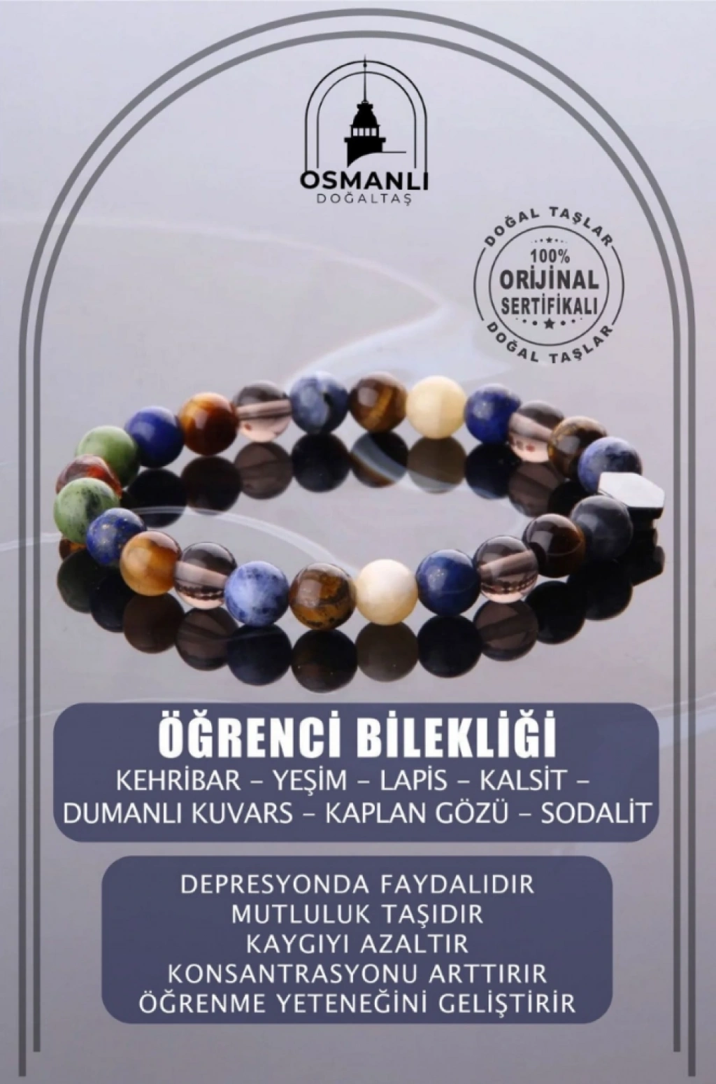 TÜM TAŞLARIMIZ SERTİFİKALI ve %100 ORJİNAL GERÇEK DOĞAL TAŞTIR.Doğal taş takılarının bu eşsiz güzelliği ve faydalarıyla müşterilerimize en kaliteli ve en özel takıları sunuyoruz. Her bir takı, tasarımcılarımız tarafından özenle hazırlanmış, doğal taşların renkleri ve enerjileri ile birlikte, size en uygun olanı seçmenizi sağlar.Doğal taş takılarımız, herhangi bir moda stiline mükemmel bir şekilde uyum sağlar. Aynı zamanda doğanın eşsiz güzelliklerini keşfetmek isteyenler için de harika bir seçenek sunarlar. Kendinizi özel hissetmek istediğinizde, doğal taş takılarımız sizin için mükemmel bir seçenek olacaktır.Ürün İçeriğindeki Taşlar Aşağıda Listelenmiştir.Dumanlı Kuvars Taşı Özellikleri: Geçmiş Takılı kalmayı atlatmayı sağlar. Tolerans ve sabrı artırır. Zor durumları çözmede yardımcı olur. Korkularla yüzleşmeyi sağlar.Kalsit Taşı Özellikleri: Dikkat eksikliğine iyi gelir. Kemik gelişimine iyi gelir. Fiziksel ve psikolojik negatif enerji ataklarına karşı koruma sağlar.Kaplan Gözü Taşı Özellikleri: İrade gücünü yükseltir. Nazara iyi gelir. Odaklanmayı artırır. Baş ağrısını hafifletir. Berrak bir bakış açısı sunar.Lapis Lazuli Taşı Özellikleri: Hafızayı kuvvetlendirir. İtibarı, saygınlığı yükseltir. Dikkat eksikliğini giderirken konsantrasyonu kuvvetlendirir, artırır. Duyguları ve hisleri kolaylıkla ifade edebilmeyi, söyleyebilmeyi sağlar.Yeşim Taşı Özellikleri: Nazarı önler ve varsa giderir. Bilge bakış açısı kazandırır. Kendi kendine yeterli olmayı sağlar. Fikir üretmeyi destekler. Öz benliği açığa çıkarır. Toksinleri giderir.BİLGİ:Doğal taşların faydaları günümüzde birçok kullanıcıdan alınan geri dönüşlerde defeatle gözlemlenmiştir. Kan dolaşımına ve sindirim sistemine bir ilaç gibi dahil edilememesi; enerjileri ve kullanımı açısından sunacağı faydaya inanma ön koşulu gerektirmesiyle kesinlikle bir ilaç mahiyetinde değildir. Fakat geçmişten günümüze Biruni ve İbn-i Sina gibi büyük tıp alimleri doğal taşlar üzerinde düşünmüş, araştırmış ve geliştirdikleri tedavi yöntemlerine dahil etmişlerdir.Doğal taşların faydaları bilimsel bir deney-gözlem sürecinden ziyade geçmişte yaşayan toplumların ve tıp alimlerinin kullanım amaçlarına istinaden belirlenmekte, tespit edilmektedir. Bil biliyoruz ki şifa sadece Allah’tandır. Nereden ve nasıl geleceği belli olmaz.KAYNAK:Osmanlı Doğaltaş taşların özellikleri ve kullanım bilgileri için aşağıdaki kaynaklardan faydalanmaktadır.Walter Schumann, Gemstones Of The World (Sterling Yayın Evi, 17. Baskı).Judy Hall, Değerli Taşlar Kitabı (Alfa Basım Yayın, 3. Basım, 2021)Muhammed Bin Mahmud-ı Şirvani, Tuhfe-i Muradi. Hazırlayan: Mustafa Argunşah (Türk Dil Kurumu, 1999)Patrick Voillot, Elmaslar ve Değerli Taşlar (Yapı Kredi Yayınları, 1. Baskı, 2013)