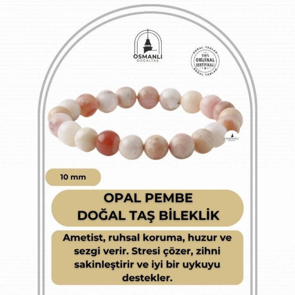 TÜM TAŞLARIMIZ SERTİFİKALI ve %100 ORJİNAL GERÇEK DOĞAL TAŞTIR. Doğal taş takılarının bu eşsiz güzelliği ve faydalarıyla müşterilerimize en kaliteli ve en özel takıları sunuyoruz. Her bir takı, tasarımcılarımız tarafından özenle hazırlanmış, doğal taşların renkleri ve enerjileri ile birlikte, size en uygun olanı seçmenizi sağlar. Doğal taş takılarımız, herhangi bir moda stiline mükemmel bir şekilde uyum sağlar. Aynı zamanda doğanın eşsiz güzelliklerini keşfetmek isteyenler için de harika bir seçenek sunarlar. Kendinizi özel hissetmek istediğinizde, doğal taş takılarımız sizin için mükemmel bir seçenek olacaktır. Ürün İçeriğindeki Taşlar Aşağıda Listelenmiştir. Pembe Opal Taşı Özellikleri: Sadakati artırır. İfade etme becerisini yükseltir. Spontane gelişimleri açar. Duyguları yoğunlaştırır, engelleri kaldırır. BİLGİ: Doğal taşların faydaları günümüzde birçok kullanıcıdan alınan geri dönüşlerde defeatle gözlemlenmiştir. Kan dolaşımına ve sindirim sistemine bir ilaç gibi dahil edilememesi; enerjileri ve kullanımı açısından sunacağı faydaya inanma ön koşulu gerektirmesiyle kesinlikle bir ilaç mahiyetinde değildir. Fakat geçmişten günümüze Biruni ve İbn-i Sina gibi büyük tıp alimleri doğal taşlar üzerinde düşünmüş, araştırmış ve geliştirdikleri tedavi yöntemlerine dahil etmişlerdir.Doğal taşların faydaları bilimsel bir deney-gözlem sürecinden ziyade geçmişte yaşayan toplumların ve tıp alimlerinin kullanım amaçlarına istinaden belirlenmekte, tespit edilmektedir. Bil biliyoruz ki şifa sadece Allah’tandır. Nereden ve nasıl geleceği belli olmaz. KAYNAK: Osmanlı Doğaltaş taşların özellikleri ve kullanım bilgileri için aşağıdaki kaynaklardan faydalanmaktadır.Walter Schumann, Gemstones Of The World (Sterling Yayın Evi, 17. Baskı).Judy Hall, Değerli Taşlar Kitabı (Alfa Basım Yayın, 3. Basım, 2021)Muhammed Bin Mahmud-ı Şirvani, Tuhfe-i Muradi. Hazırlayan: Mustafa Argunşah (Türk Dil Kurumu, 1999)Patrick Voillot, Elmaslar ve Değerli Taşlar (Yapı Kredi Yayınları, 1. Baskı, 2013)