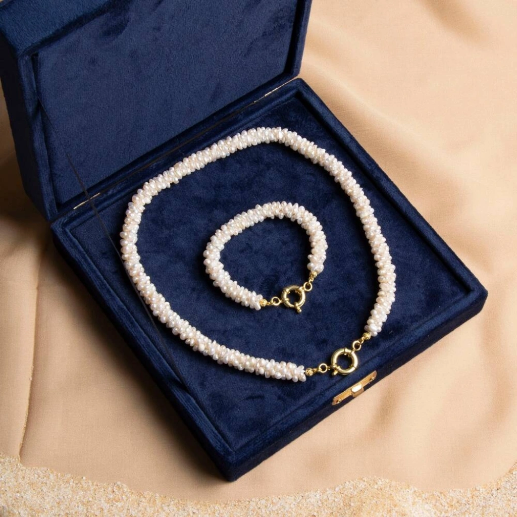 Zarafeti ve denizciliğin estetik mirasını bir araya getiren Burma Minimal İnci Kolye & Bileklik Seti, Osmanlı Doğal Taş imzasıyla özel olarak tasarlandı. Doğal Burma incilerinin saf ve eşsiz ışıltısı, gümüş aksesuarların sofistike dokunuşuyla buluşuyor. Bu özel setin en dikkat çekici detayı ise gemici dümeninden esinlenerek tasarlanan kilit sistemi, hem işlevselliği hem de anlamı ile denizcilik ruhunu modern mücevher sanatına taşıyor. Öne Çıkan Özellikler:
