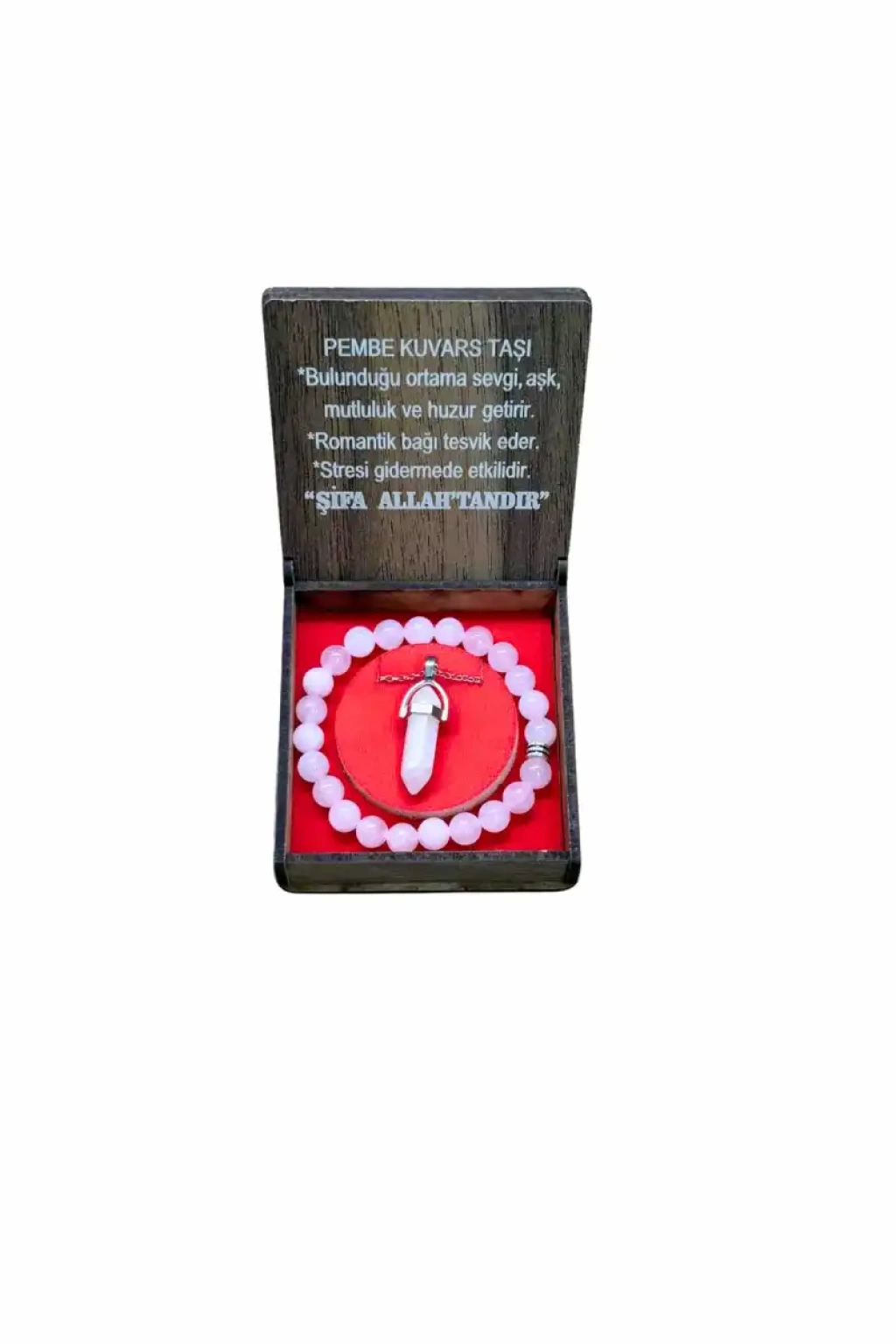 Pembe Kuvars Taşı Kolye & Bileklik Set