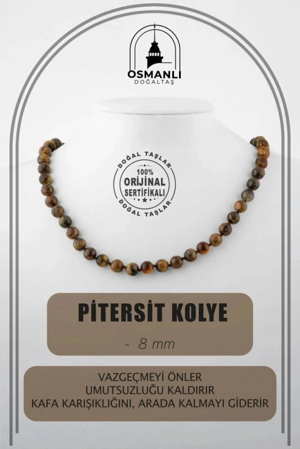 TÜM TAŞLARIMIZ SERTİFİKALI ve %100 ORJİNAL GERÇEK DOĞAL TAŞTIR. Doğal taş takılarının bu eşsiz güzelliği ve faydalarıyla müşterilerimize en kaliteli ve en özel takıları sunuyoruz. Her bir takı, tasarımcılarımız tarafından özenle hazırlanmış, doğal taşların renkleri ve enerjileri ile birlikte, size en uygun olanı seçmenizi sağlar. Doğal taş takılarımız, herhangi bir moda stiline mükemmel bir şekilde uyum sağlar. Aynı zamanda doğanın eşsiz güzelliklerini keşfetmek isteyenler için de harika bir seçenek sunarlar. Kendinizi özel hissetmek istediğinizde, doğal taş takılarımız sizin için mükemmel bir seçenek olacaktır. Ürün İçeriğindeki Taşlar Aşağıda Listelenmiştir. Pitersit Taşı Özellikleri: Vazgeçmeyi önler, umutsuzluğu kaldırır. Kafa karışıklığını, arada kalmayı giderir. Baş dönmelerine ve ağrılarına iyi gelir.