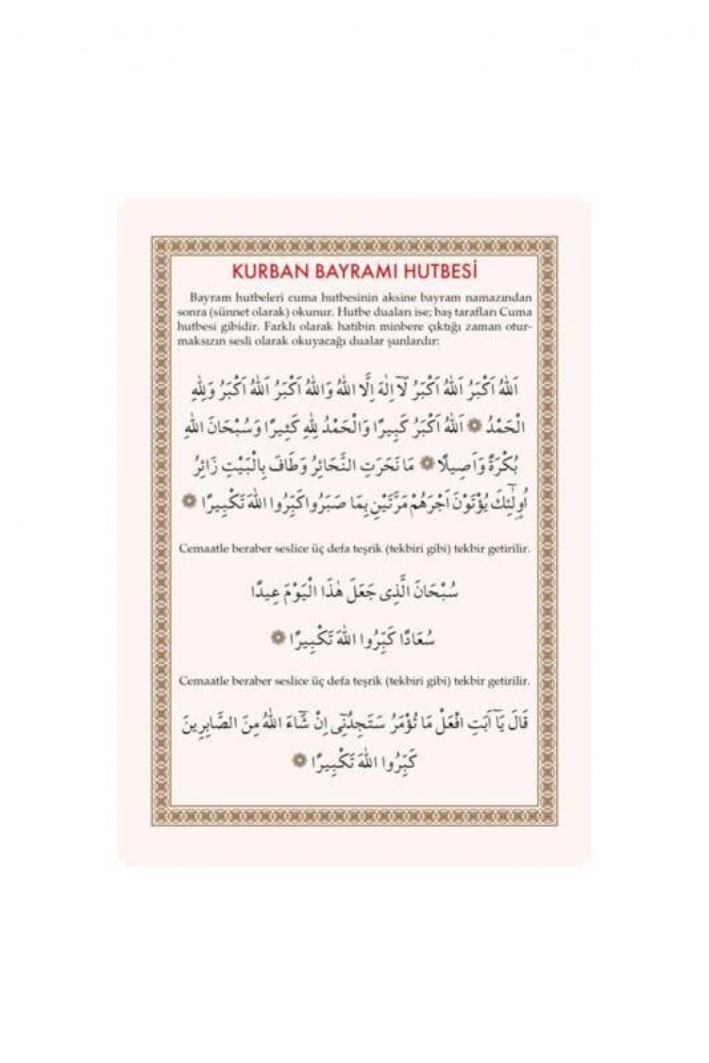 Pvc Kurban Bayramı Hutbesi 10.5x14.8