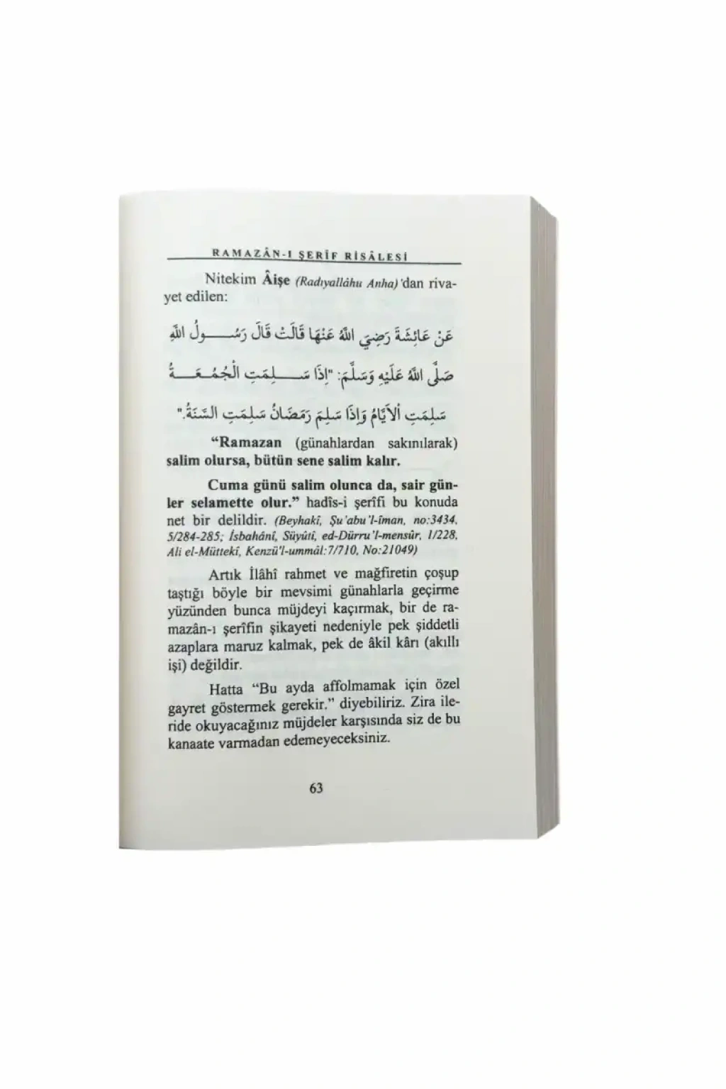 Eğer (bir sonraki) ramazana ulaşmadan ölecek olursa Allâh-u Te‘âlâ katında onun için kendisi ile ateşten sakınacağı hiçbir hasene (ve sevap) bulunmayacaktır. O halde siz ramazan ayında Allâh-u Te‘âlâ’dan sakının. Zira gerçekten diğerlerinde katlanmadığı kadar sevaplar onda katlanır. Günahlar da böylecedir.” (Taberâni, el-Mu‘cemü's-Sağîr, 1/248; Abdülkâdir el-Geylânî, el-Gunye, 2/9; Isbehânî, Süyûtî, ed-Dürrü’l-Mensûr, 2/229)